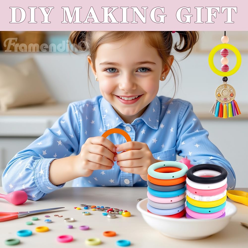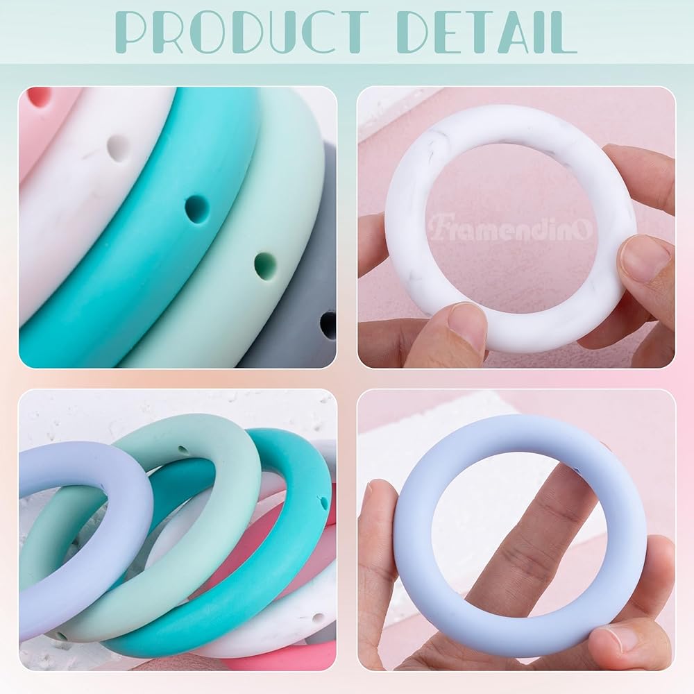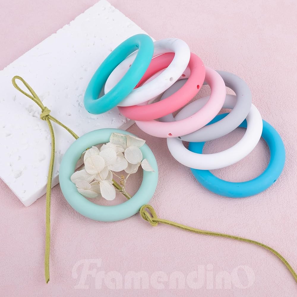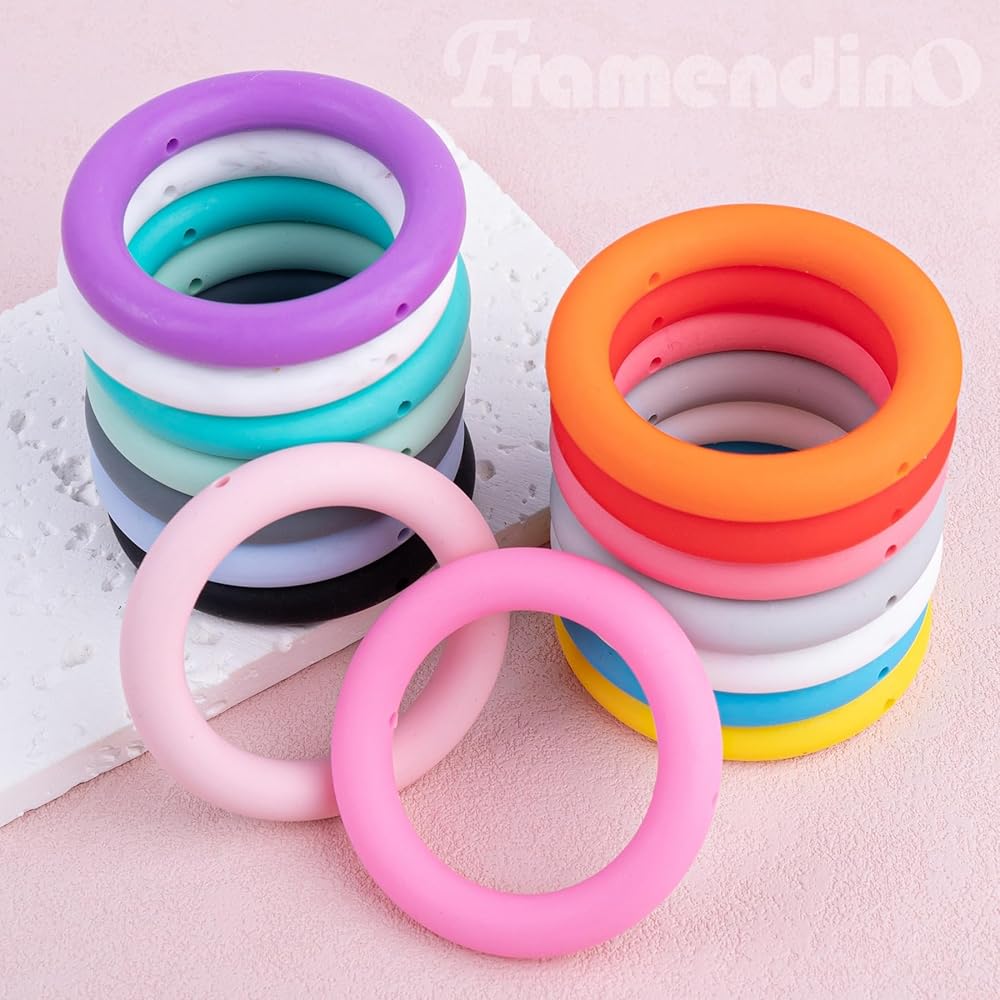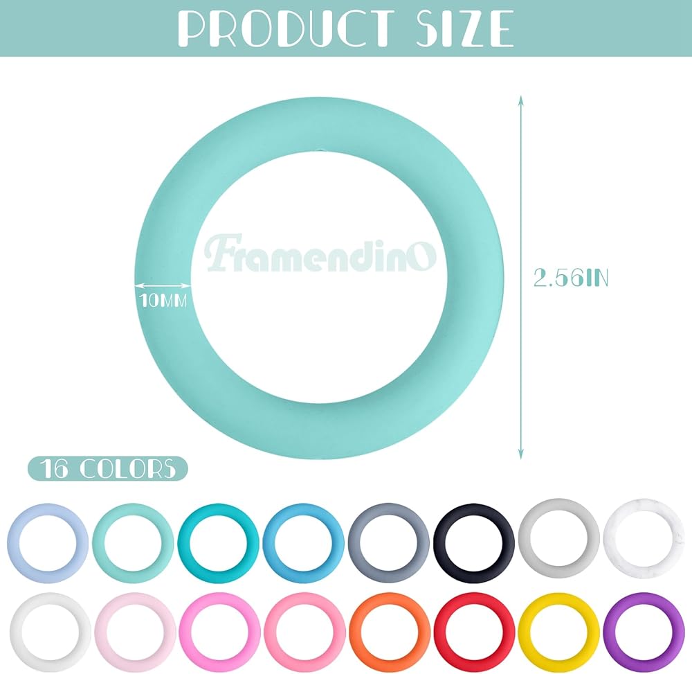 Framendino، 16 حزمة سيليكون قابلة للخرز على شكل O حلقات دائرية إطار خرز 65 مم حلقة خرز دائرية وصلة دائرية موصلات الخرز البؤري قلادة سحر DIY سلسلة مفاتيح وسوار صنع المجوهرات
