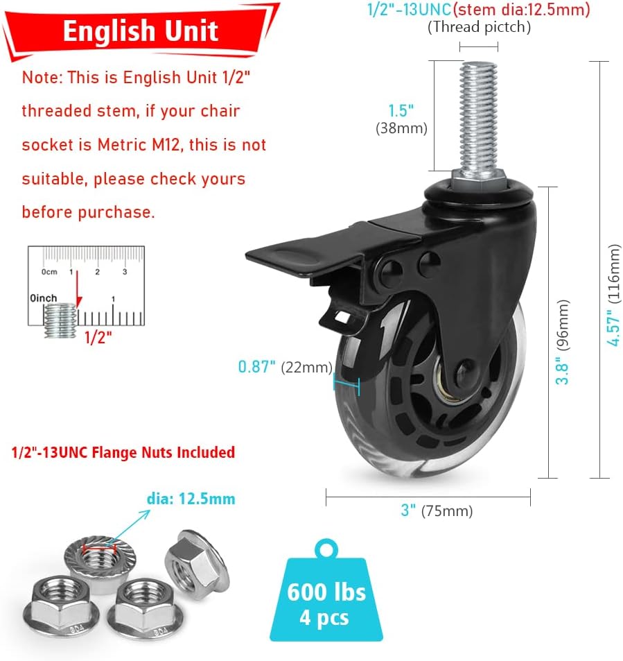 • حجم الجذع الإمبراطوري: العجلات لدينا هي الحجم الأمريكي القياسي 1/2 بوصة - 13، وقطر المسمار 1/2 بوصة - 13UNC وطول المسمار 1.5 بوصة (38 مم)، إذا كان مقبس الجذع الخاص بك متري M12، فهذه العجلة ليست كذلك مناسبة، يرجى التحقق قبل الشراء.