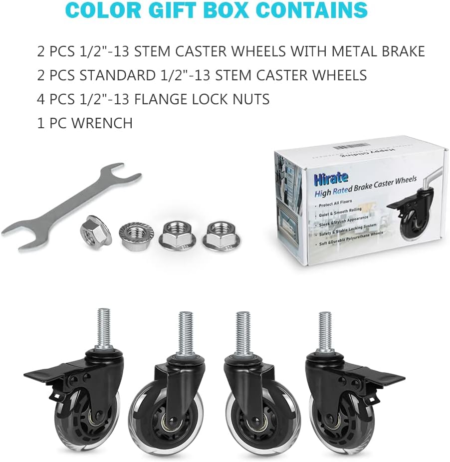 • ضمان مدى الحياة: تأتي حزمة Hirate مع عبوتين من العجلات المعدنية القابلة للقفل + 2 عجلة قياسية تتضمن 1/2 بوصة - 13 صواميل قفل من النايلون. سيتم دعم كل عجلة من قبل Hirate مع ضمان مدى الحياة للاستبدال مجانًا. مهما كان السبب، لأية شكوك، فقط اتصل بنا بحرية في أي وقت.
