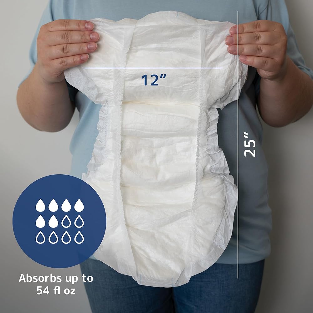 The Abena San Size 6 measures 24.8"x 11.8"; Absorbs up to 54 fl oz