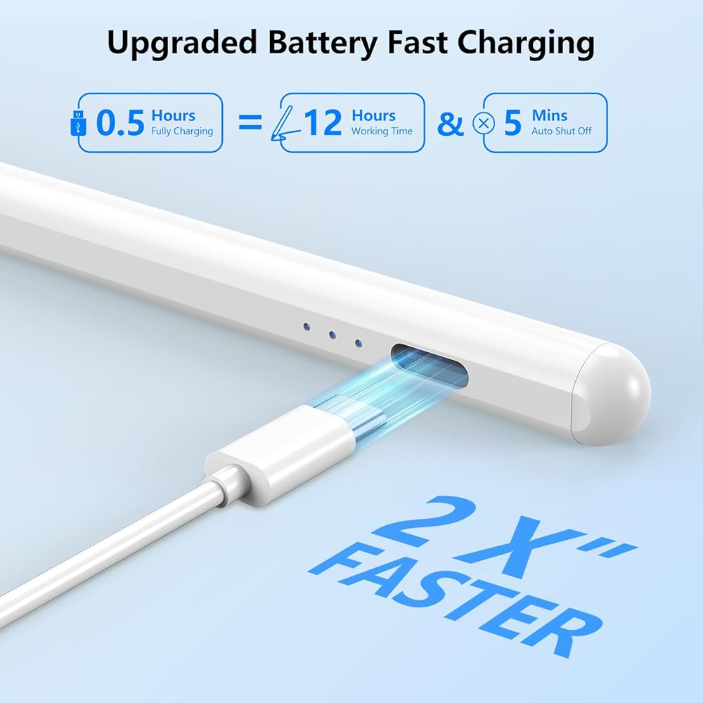 قلم شاشة HOTLIFE لجهاز iPad الجيل العاشر والتاسع، شحن أسرع لقلم Apple iPad مع خاصية رفض راحة اليد، متوافق مع (2018-2022) iPad Pro 11 بوصة/12.9 بوصة، iPad Mini 6/5 Gen، iPad Air 3-5، iPad 6 -10