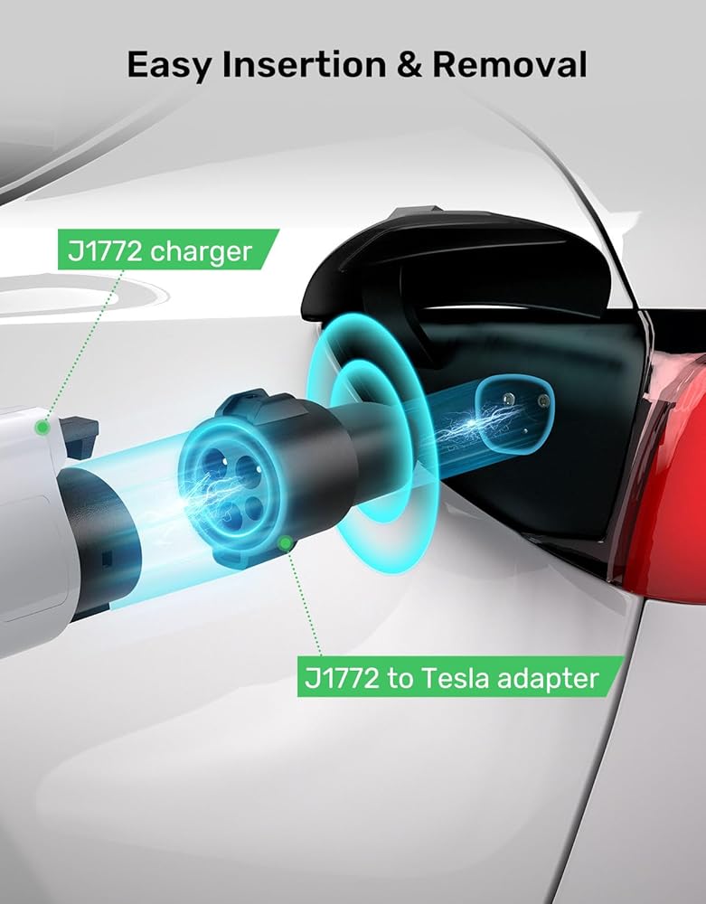محول J1772 إلى Tesla - [يناسب جميع مالكي Tesla] محول شحن Tesla بحد أقصى 80 أمبير/240 فولت تيار متردد لطراز Tesla Y/3/X/S وملحقات Cybertruck، متوافق مع محطات الشحن من المستوى 1/2