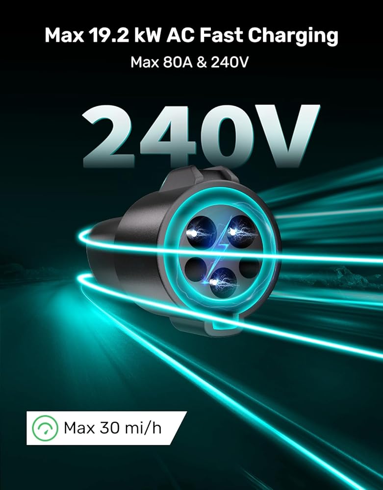 𝐀𝐂 𝐅𝐚𝐬𝐭 𝐂𝐡𝐚𝐫𝐠𝐢𝐧𝐠 – يدعم محول الشحن Zanch SAE J1772 ما يصل إلى مخرجات 80 أمبير و240 فولت، مما يوفر سرعة شحن أسرع قليلاً مقارنة بالأجهزة الأخرى. يسمح لك بشحن سيارة Tesla الخاصة بك باستخدام شاحن J1772 المستوى 2، بنطاق أقصى يصل إلى 30 ميلاً في الساعة.
