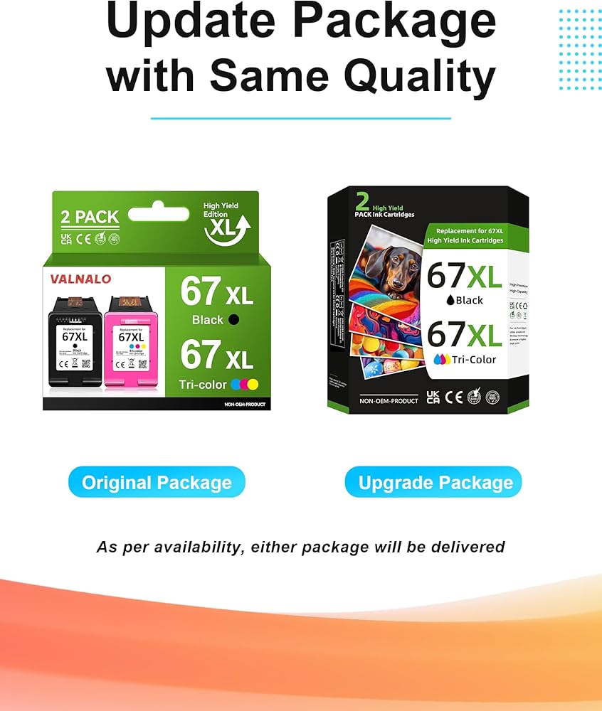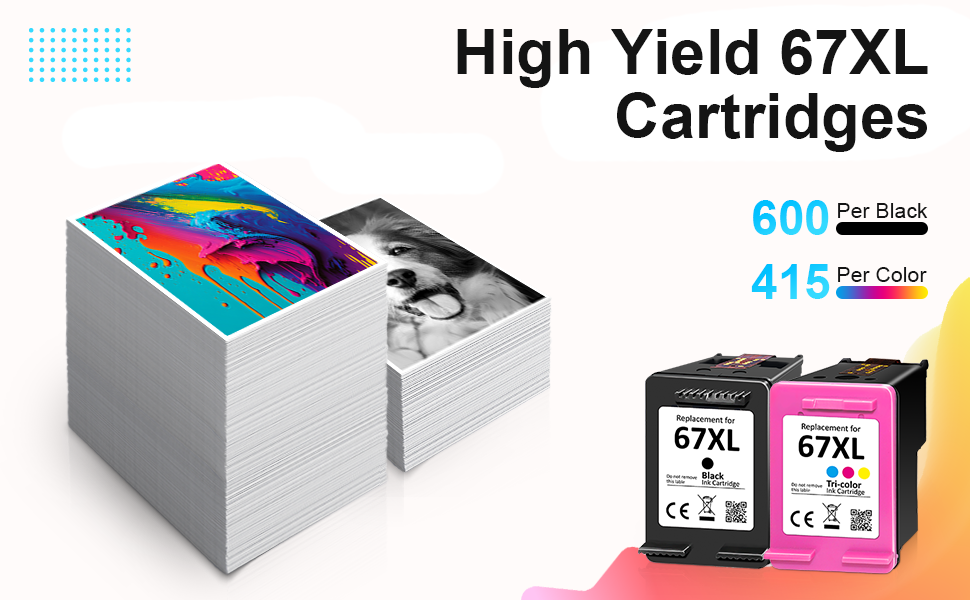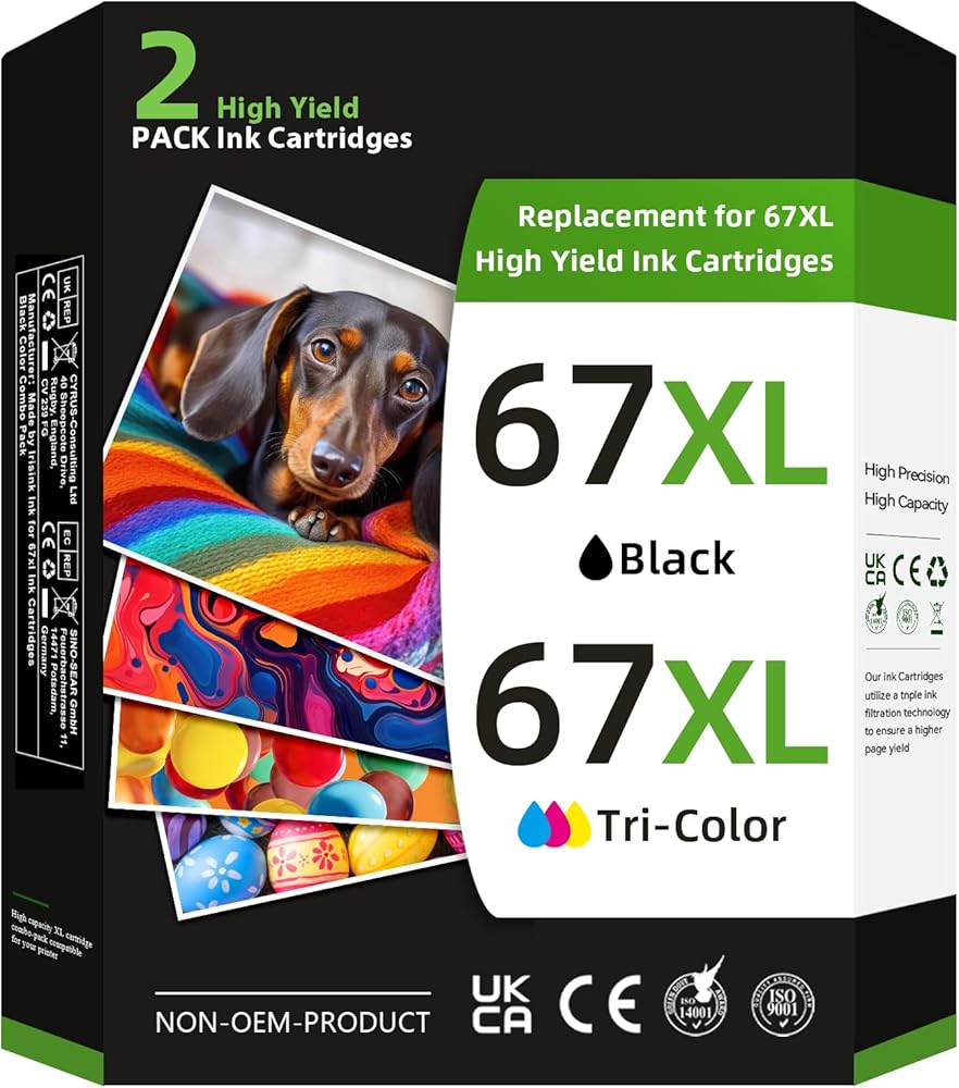 يرجى التذكير: يرجى التحقق من قائمة طراز الطابعة لحبر الطابعة هذا لـ HP 67XL قبل الشراء، والتأكد من أن مجموعة خراطيش الحبر 67xl هذه باللون الأسود/اللون متوافقة مع طابعتك (هذا ليس منتج OEM)
