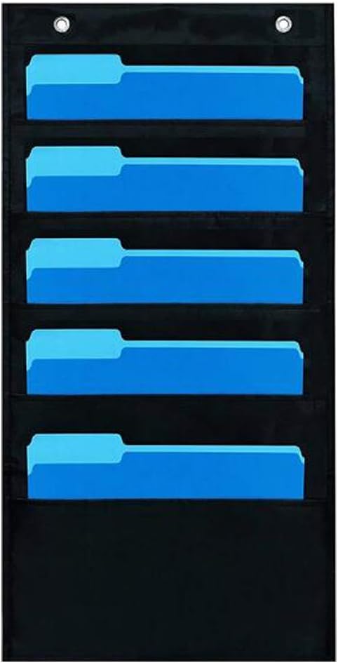Durable pocket chart (hanging wall file) with 5 letter sized pockets. For Teacher and Student to plan and file works reference. Elegant storage options for efficiency workplace.