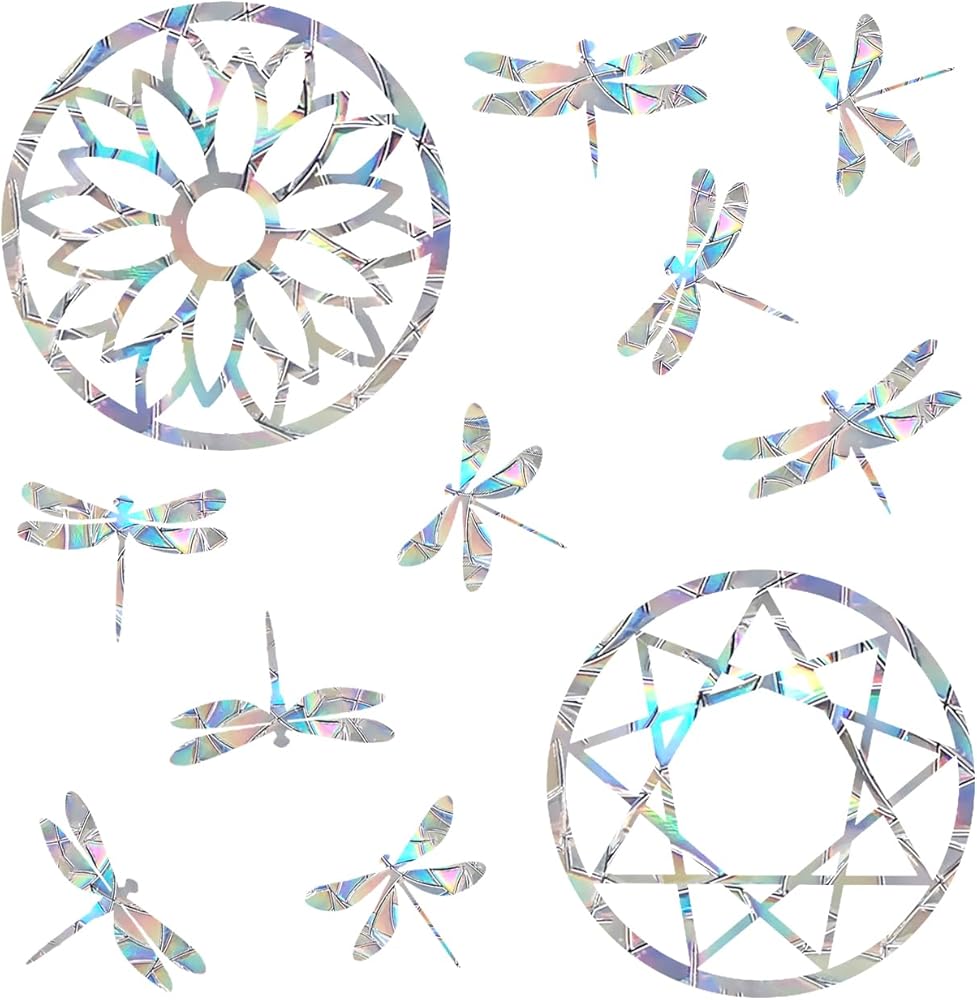 Prismatic vinyl static window clings to protect birds from crashing into windows & glass doors.