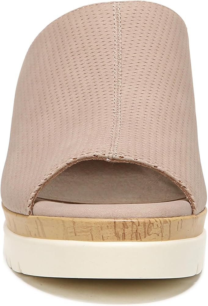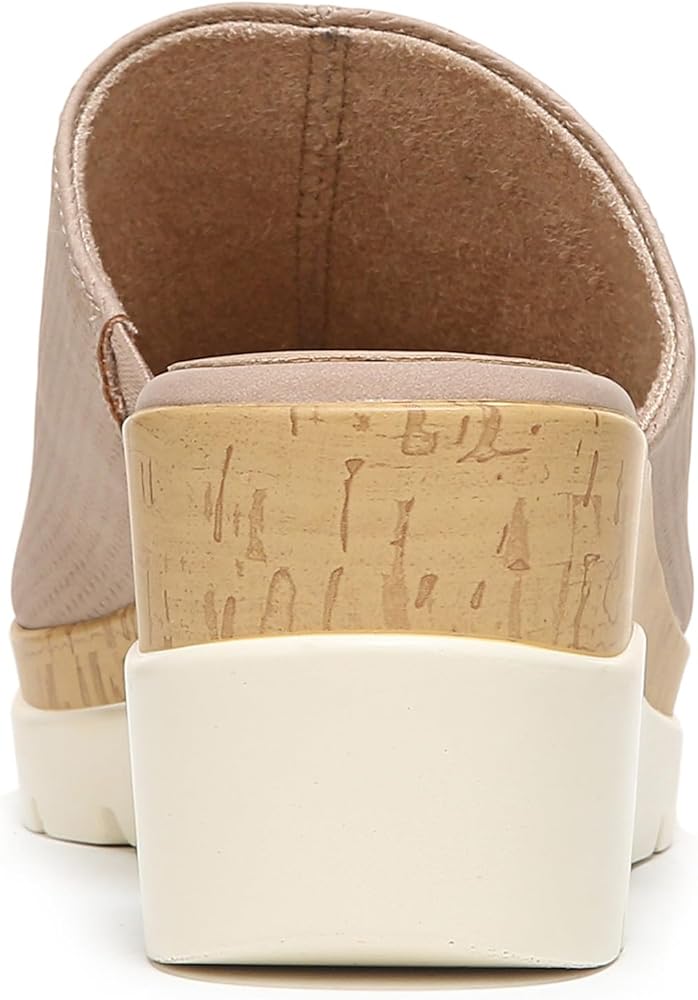 Casual open toe mule wedge sandal for women with cork accent and platform white lug sole