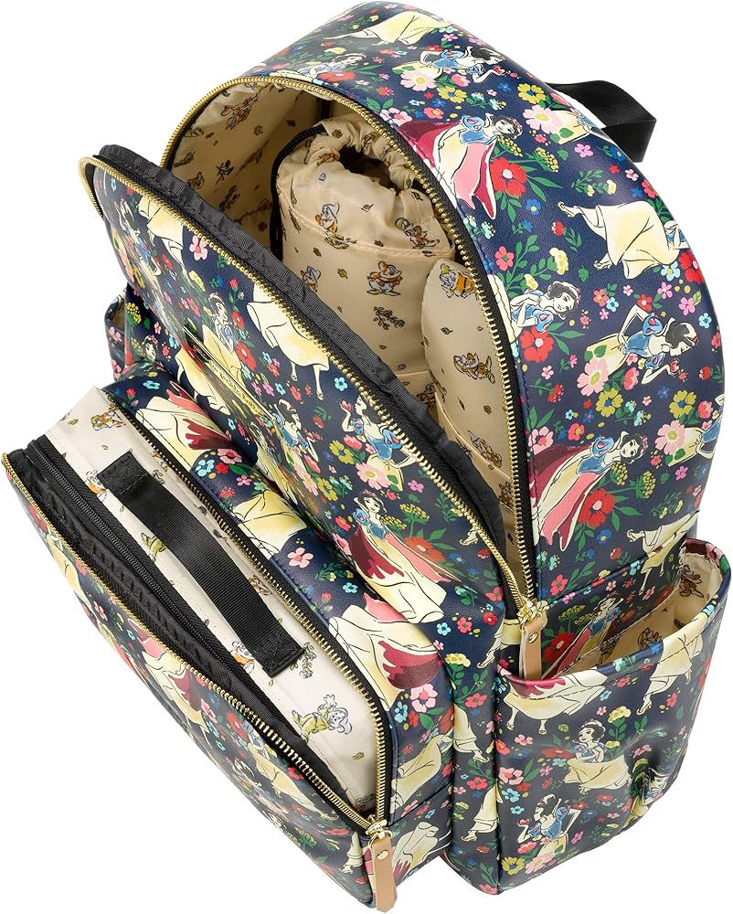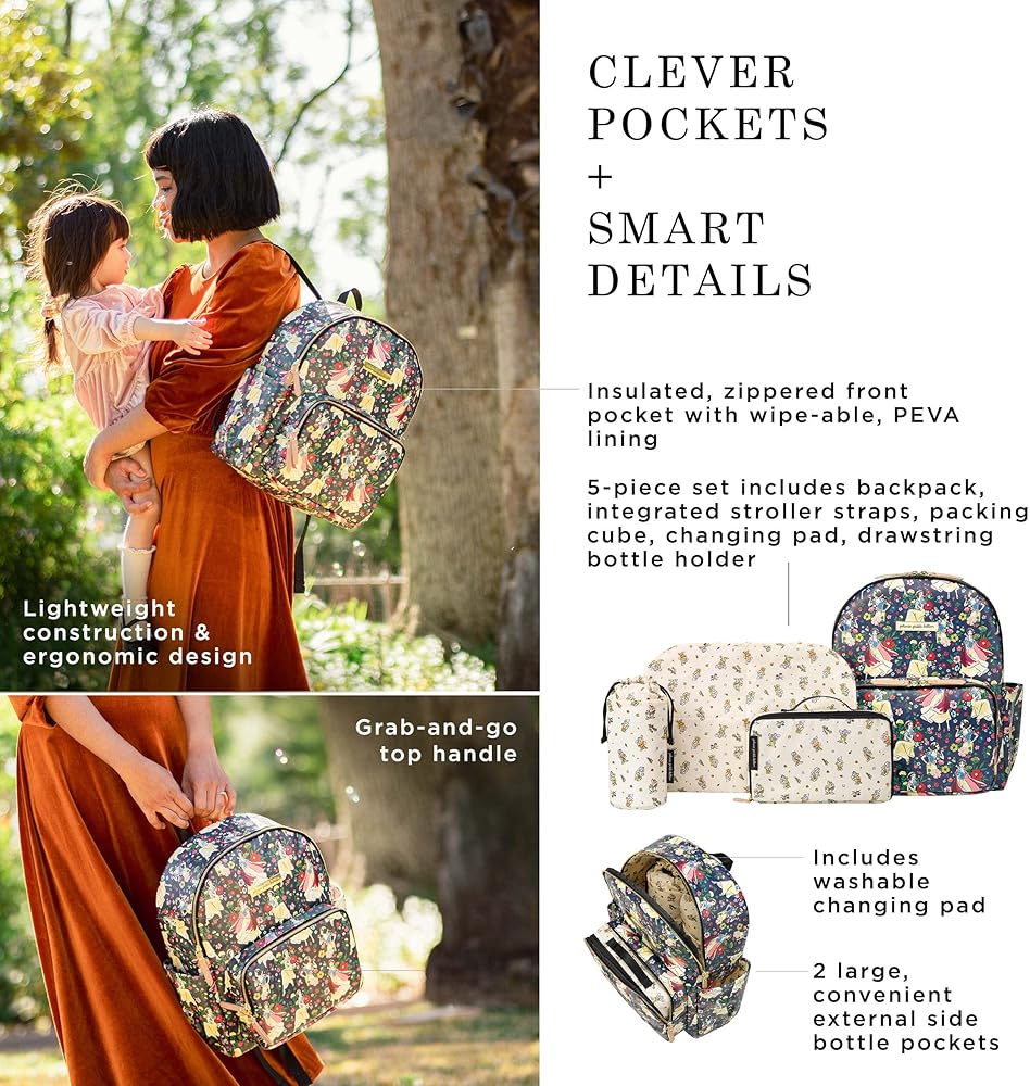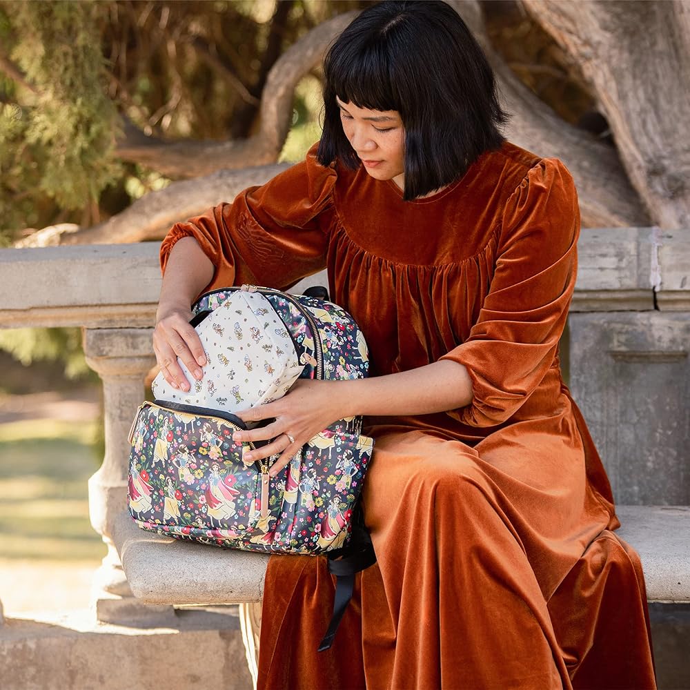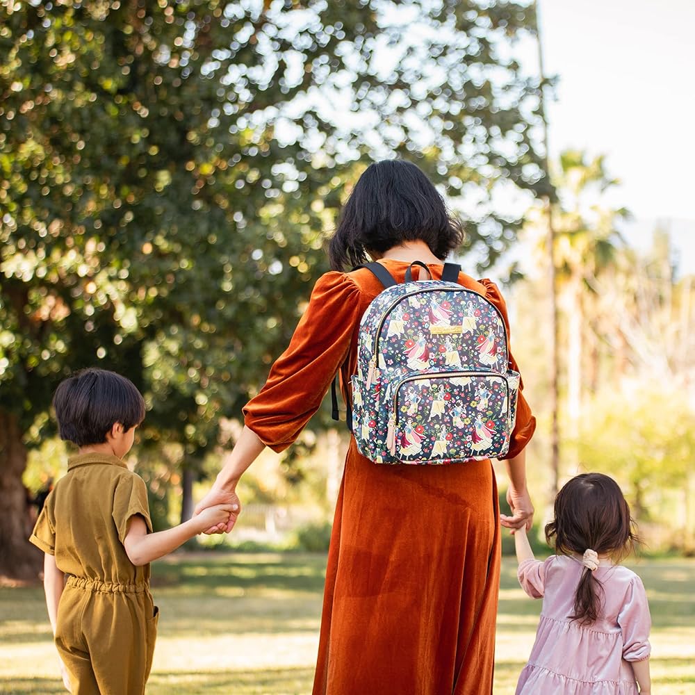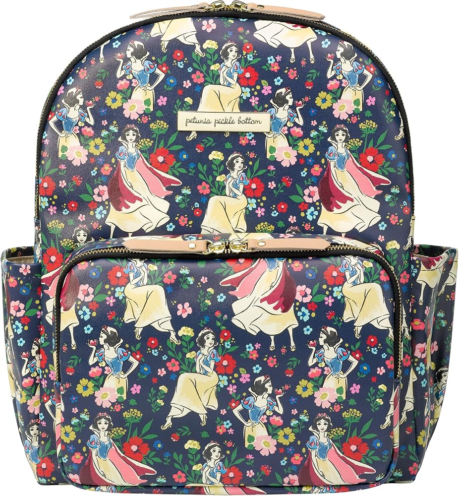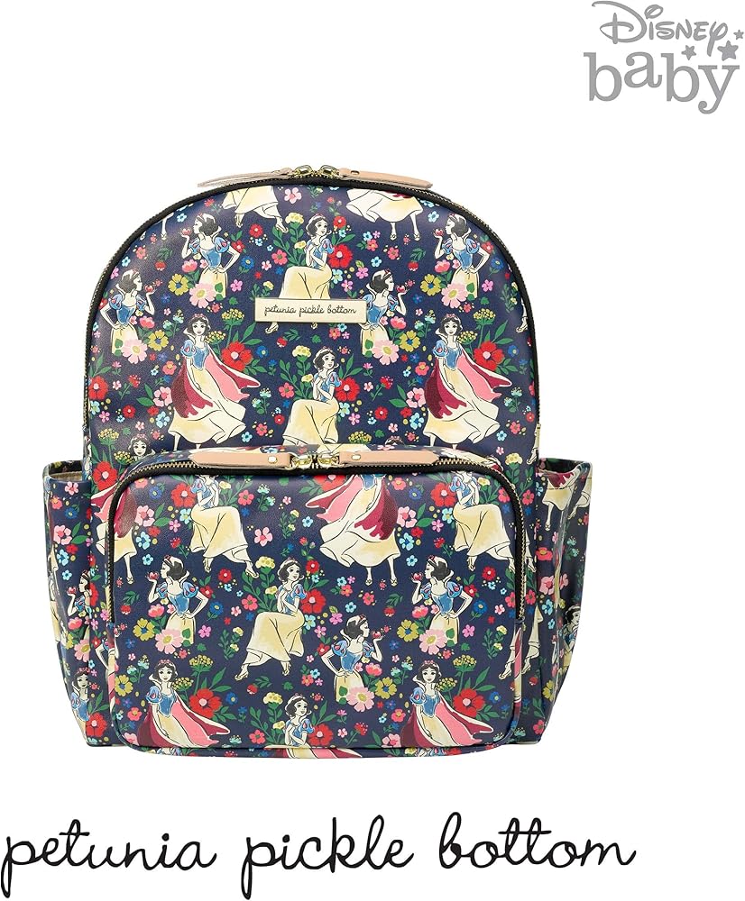 Introducing the Disney Princess Courage & Kindness Diaper Bag Collection – an exclusive collaboration between Disney Baby and Petunia Pickle Bottom featuring Disney's Cinderella, Ariel, Belle, Jasmine, Mulan, Tiana, and Moana. Featured on Petunia Pickle Bottom District Backpack: An organizers dream! Comes with a drawstring bottle holder, washable changing pad, a packing cube, and integrated stroller clips. It's lightweight and ergonomic with thoughtfully placed pockets. Pack with confidence, ready for anything that comes during day.