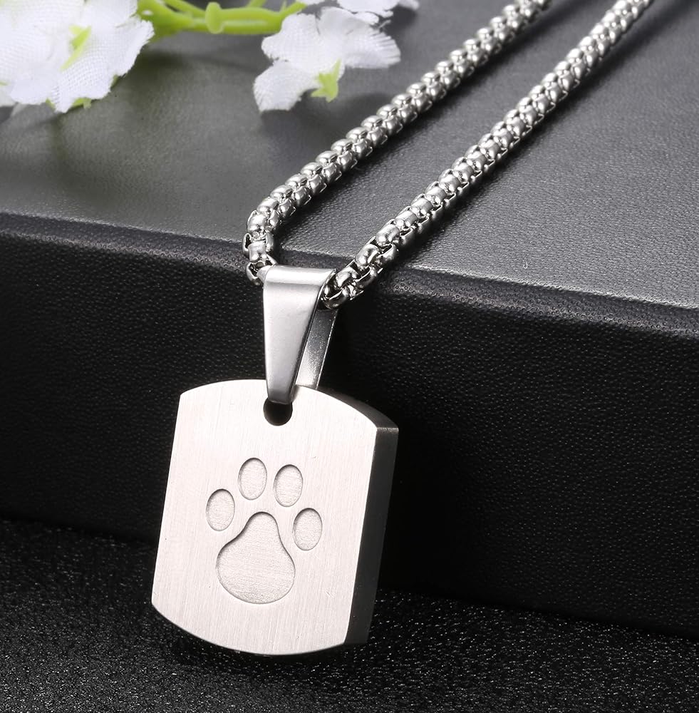 🐾مادة عالية الجودة🐾 نسخة محدثة، مصنوعة من الفولاذ المقاوم للصدأ الجراحي سعة 316L، سطح أملس مصقول للغاية. سلسلة قوية. لن تصدأ أبدًا. تعتبر مجوهرات الكلاب هذه مثالية لتخليد ذكرى من تحب إلى الأبد وإبقاء من تحب قريبًا من قلبك في جميع الأوقات. إنها رائعة تمامًا ويبدو أنها مصنوعة بشكل جيد.