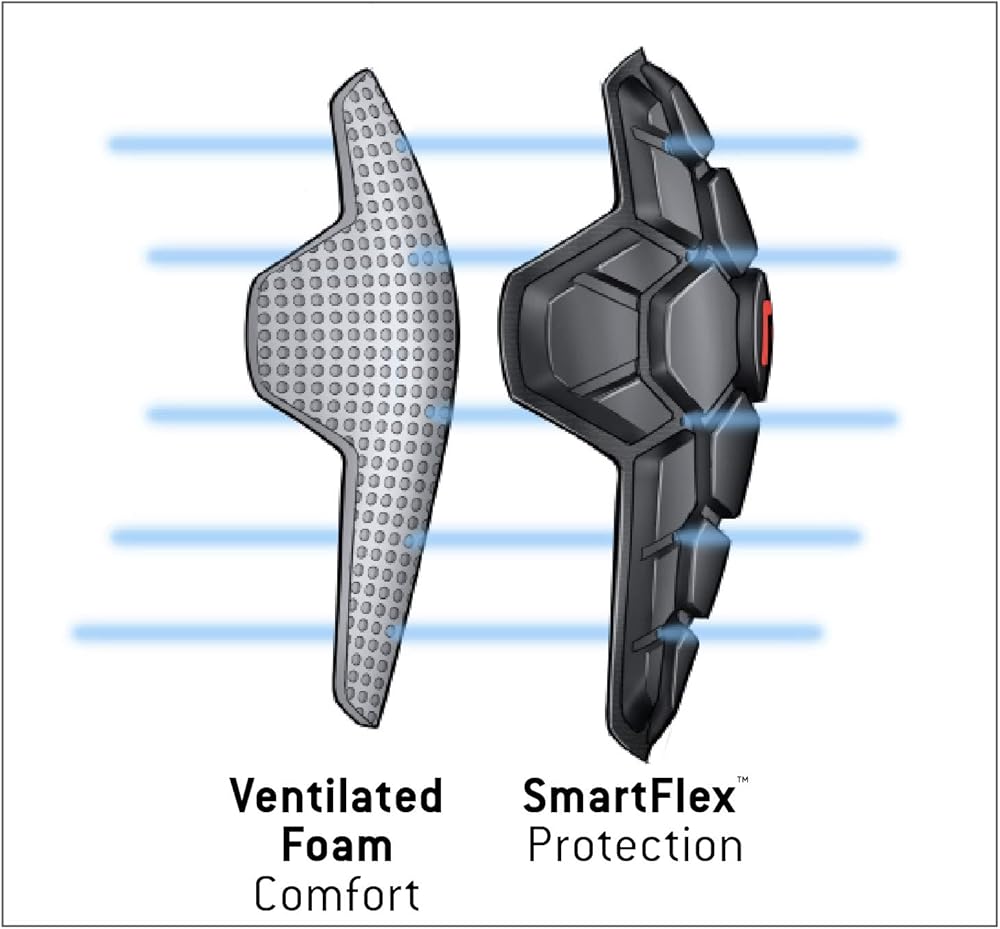 • ULTIMATE COMFORT AND BREATHABILITY: Body-mapped, impact-absorbing SmartFlex pads layered on top of a ventilated, soft inner foam layer allowing for maximum protection, comfort and breathability