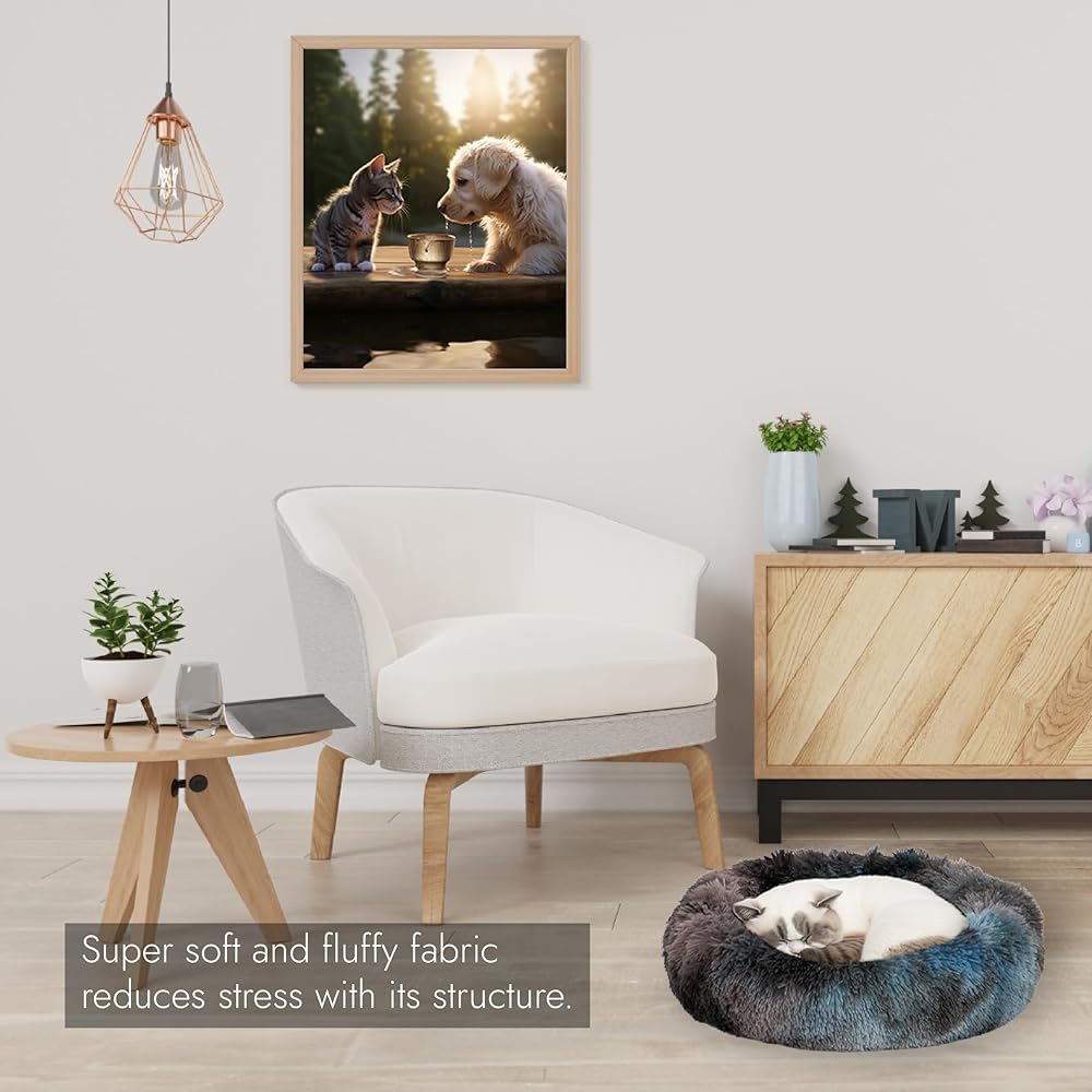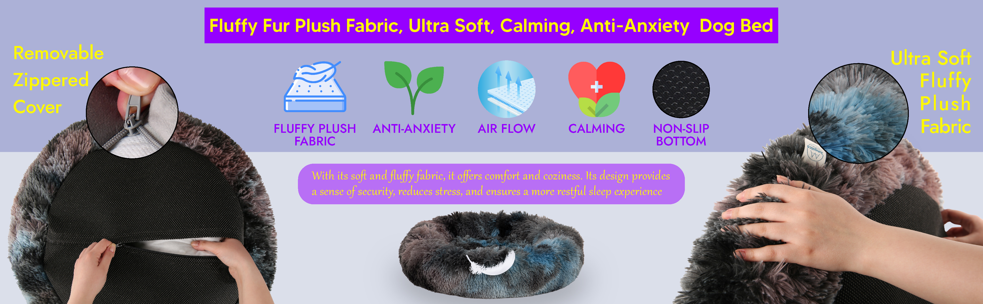 🐾تصميم مريح مهدئ🐶 التصميم المريح المهدئ لهذا السرير، بشكله الدائري ومسنده بطول 7 بوصات، يخلق بيئة مثالية للعناق والاختباء. فهو لا يساعد فقط على تخفيف قلق الكلاب ولكنه يوفر أيضًا شعورًا بالأمان أثناء نوم حيوانك الأليف.