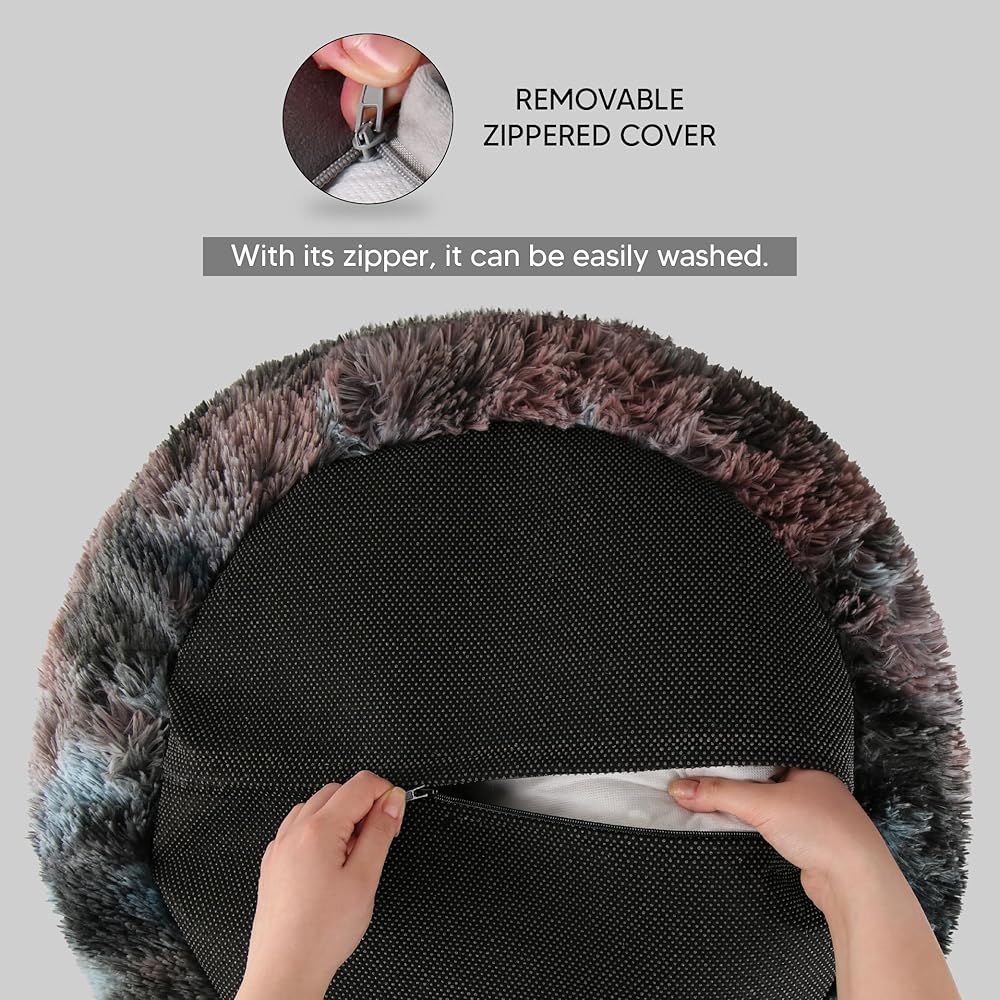 Jungolica pet adgced dog bed 33 "large-ultra soft donut lape sped bed for cogs and barge chare ، spluffy splush anti-anx lext with cover cover القابلة للإزالة ، الاحترار الذاتي المريح ، القاع المضاد للانزلاق