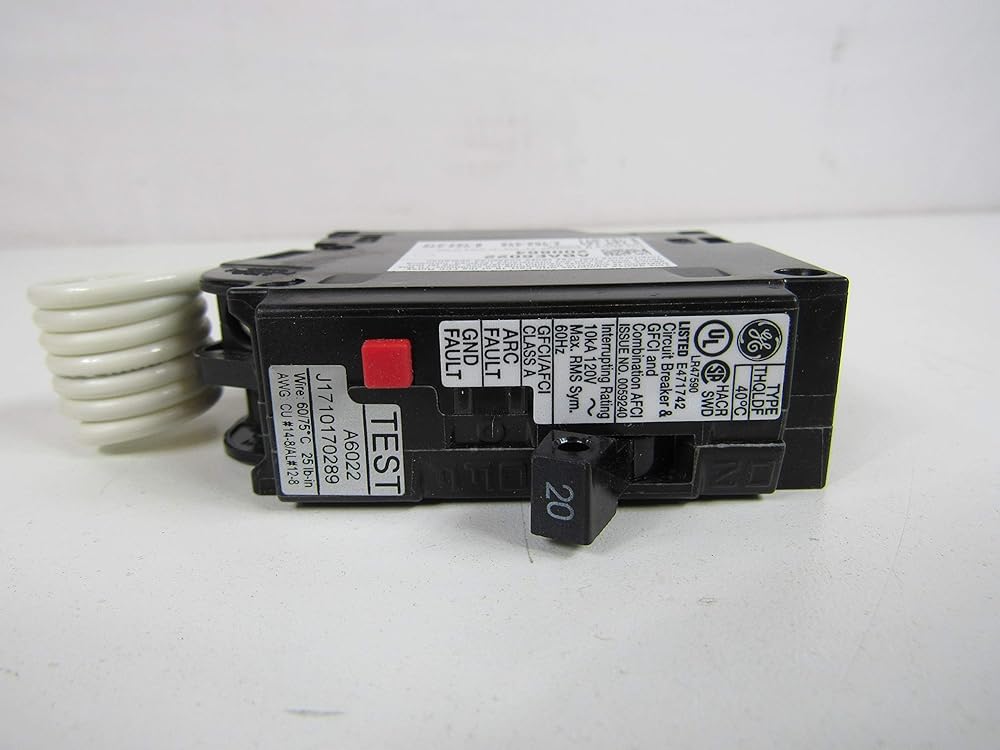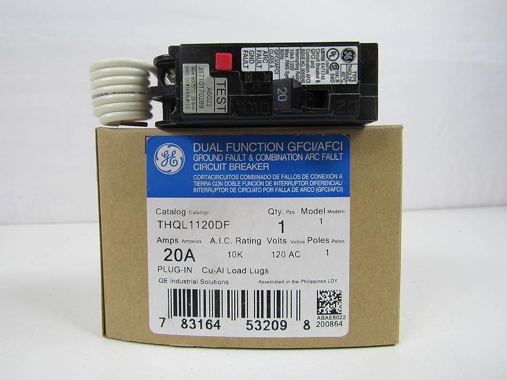 GE's Dual Function Circuit Interrupter (DFCI) provides ground fault and arc fault circuit protection in one unit. The 2014 National Electric Code mandated Ground Fault and Arc Fault circuit protection on many 15 and 20 amp kitchen and laundry circuits. Our DFCI offers both Ground Fault and Combination Arc Fault (GFCI and AFCI) protection in a simple to apply and cost-effective package., Category: Q-Line (Plug-In), Trip Style: Non-Interchangeable, Frame Type: Q-Line, Amperage: 20A, Poles: 1, System Voltage: 120 Vac, 120 Vac Interrupting Rating: 10 KAIC, Trip Function: LI AFCI and GFCI, Continuous Current Rated: Standard, Long Time: Fixed, Current Metering: No, Protective Relays: No, Special Markings: HACR, SWD, Wire Range (Cu/Al): #14-8 AWG, UL File #: E471742, GSA Compliance: No.