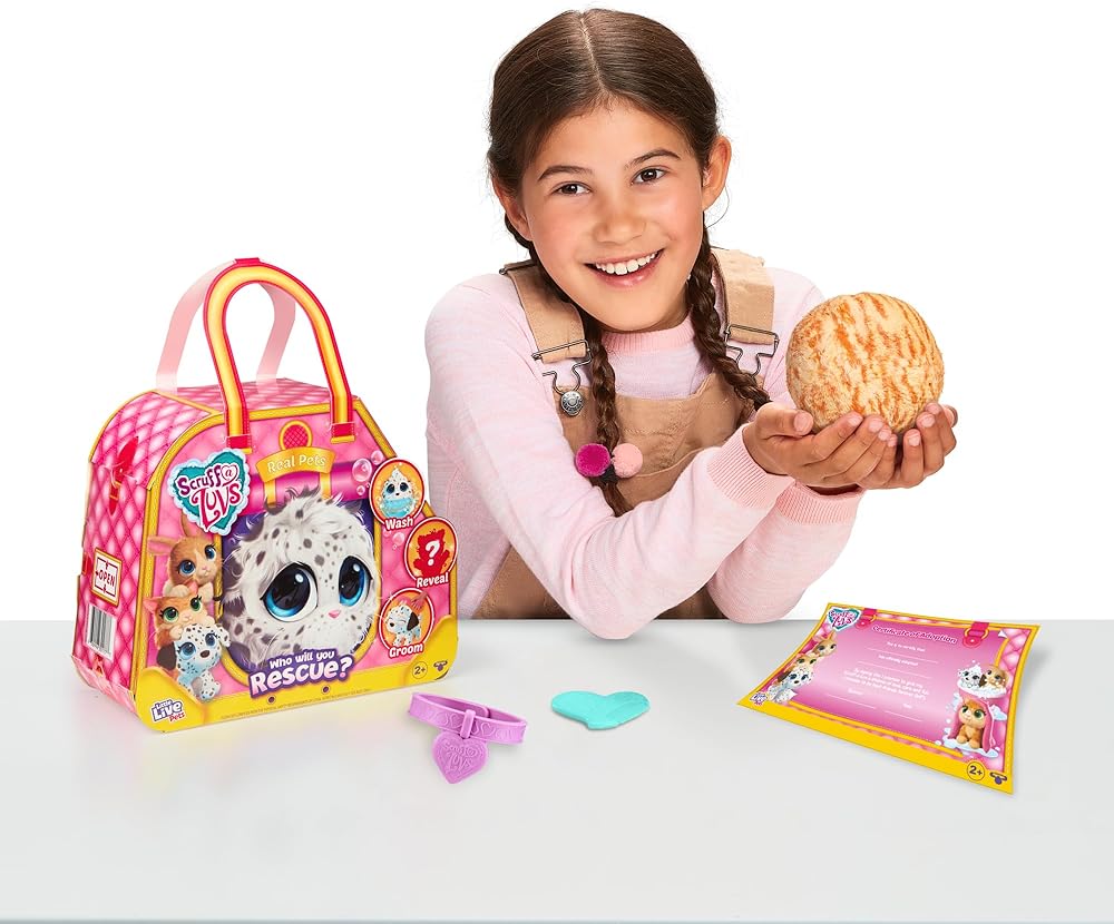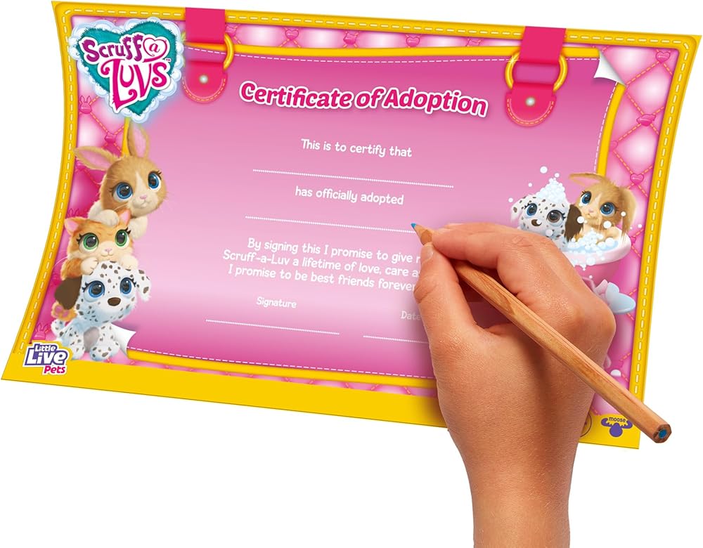 Rescue a Scruff-a-Luvs and give them their forever home! These little abandoned pets need your love and your help. Inside the box is a mystery pet waiting to be rescued! Which Scruff-a-Luvs will you rescue? Will you find a Scruff-a-Luvs Bunny, Puppy or Kitty inside? Your Scruff-a-Luvs pet arrives as a sad ball of matted fur, but once you bathe them to reveal their true fur, dry, brush and love them, you will discover what kind of pet they really are! Every Scruff-a-Luvs comes with their very own beautiful comb for you to give your new pet a grooming session to make them look extra special. These Scruffs all have "soft-touch" fur making them even extra cuddly! Finally, place their collar and tag around their neck to give them a "pawfect' look! Plus your Scruff-a-Luvs comes with an adoption certificate for you to fill in. Give Your Scruff-a-Luvs a loving home and make them your own! With love and care they'll be your FFF (Furry Friend Forever).
