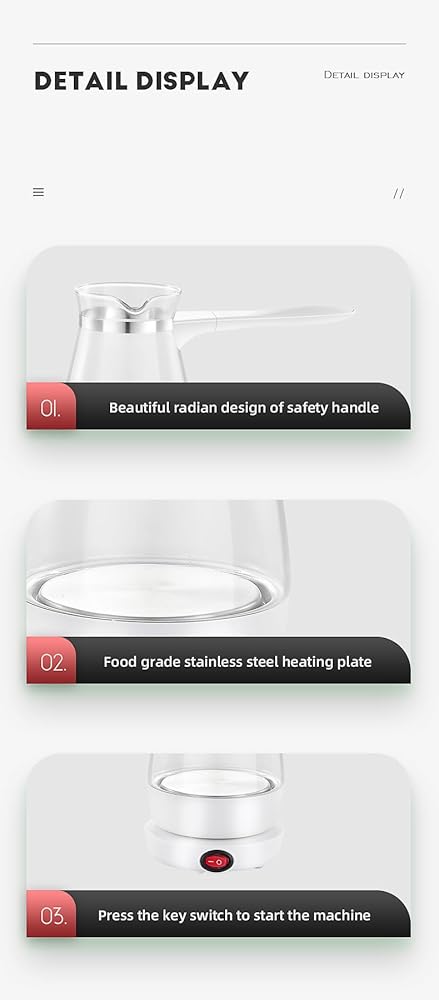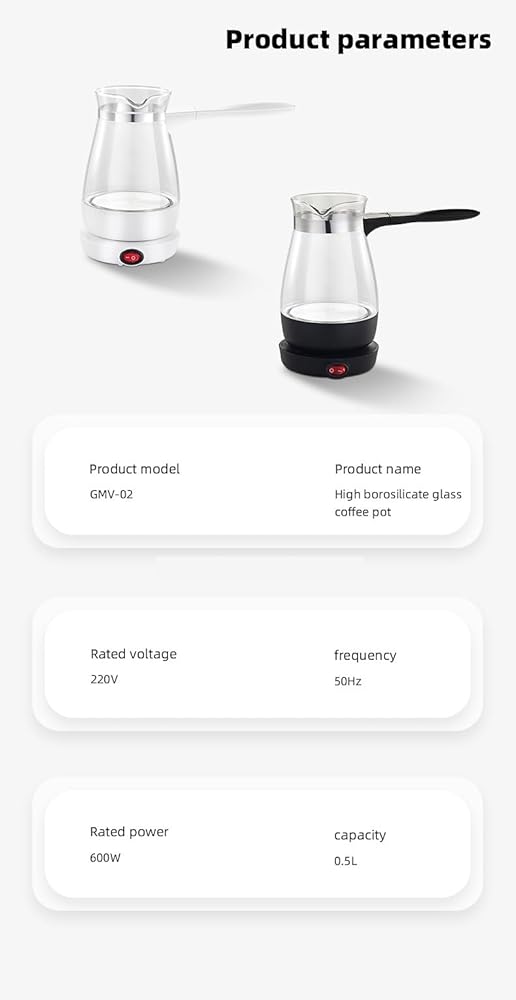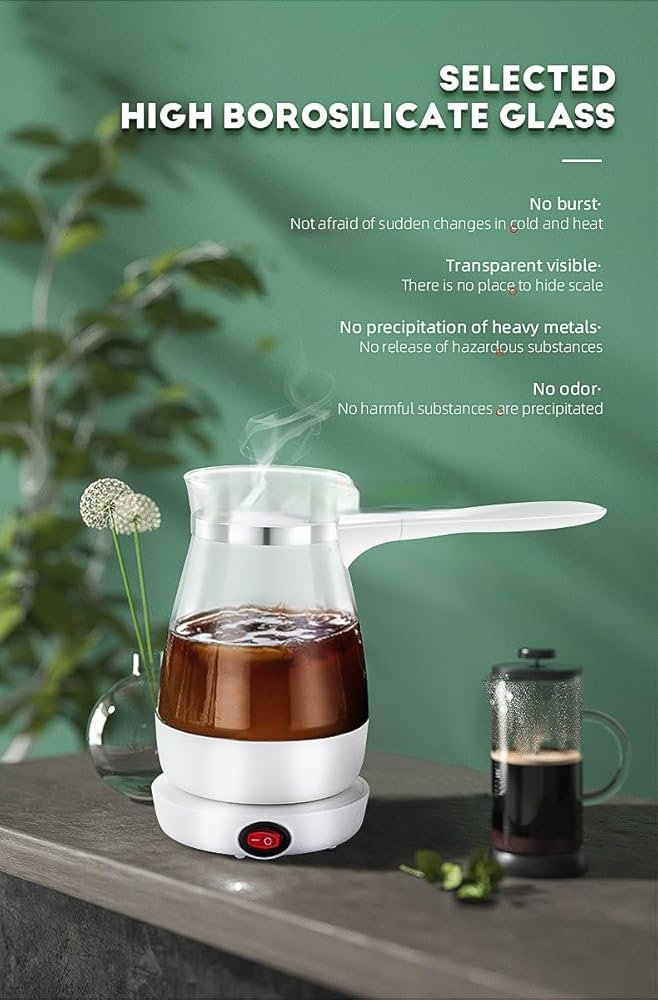 - 500ml Electric Turkish Coffee Maker, made out of 100% BPA Free material. Featuring a 600 W heating system