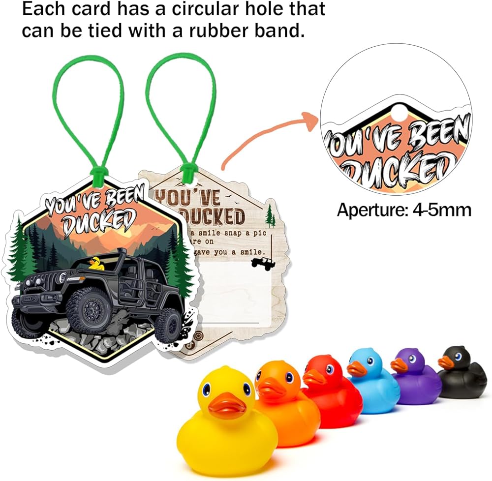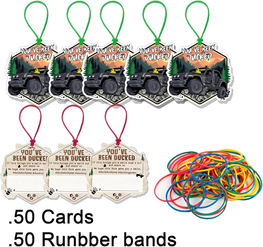 Upgraded Duck Duck Tag: 3.1 x 3.1Inches, 50cards, 50colorful rubber bands.unique and personalized handwriting space is added on the back. You can customize whatever you want to express!