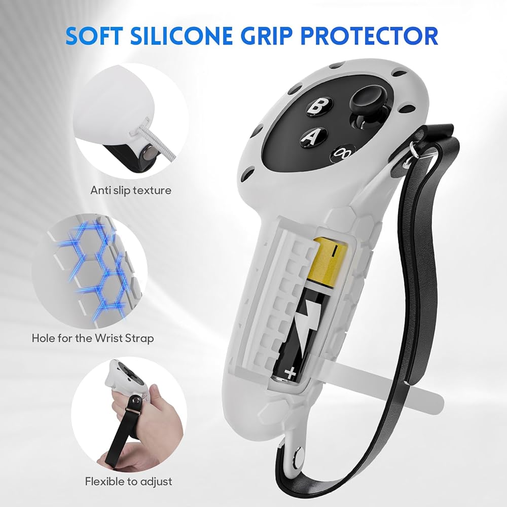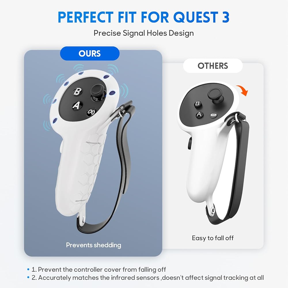 🎯【لا يوجد حجب للإشارة】 التصميم الخاص لغطاء مقبض وحدة التحكم Oculus يناسب تمامًا غطاء مقبض وحدة التحكم Quest 3 دون حجب الإشارة والتداخل مع التتبع المنتظم للمستشعر.