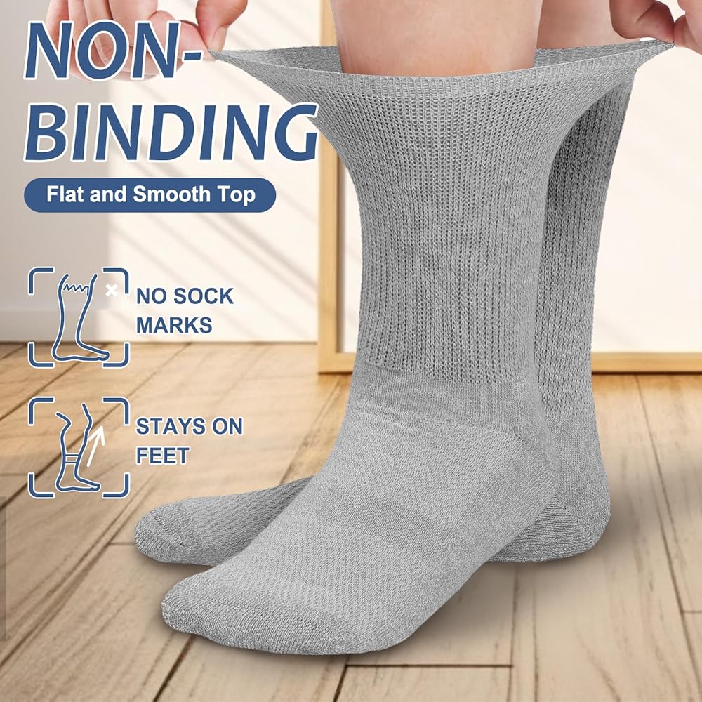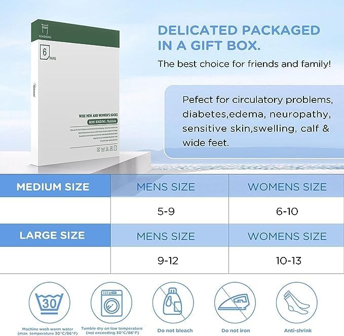 • مقاسات وألوان متعددة - جوارب Bulinlulu غير المربوطة لمرضى السكري متوفرة في 6 ألوان. إذا كنت متعبًا من جوارب مرضى السكري باللونين الأبيض والأسود، فما عليك سوى اختيار Revosoxs. جوارب مرضى السكري الرجالية العريضة للغاية سهلة السحب والخلع، وأقل عرضة للتكديس. متوسط المقاس يناسب مقاس الرجال 5-9 والنساء 6-10. مقاس كبير يناسب الرجال 9-12 ومقاس النساء 10-13.