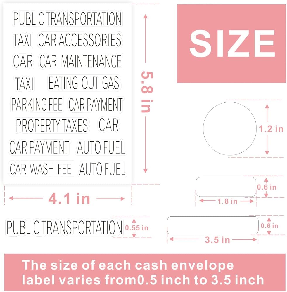 حجم الملصق الأنيق والقطع الرائع: يتضمن كل ملصق 14-24 كلمة من فئة الميزانية، ويبلغ قياس كل كلمة حوالي 2 × 0.7 بوصة. تم قطع ملصقات ملصقات الظرف النقدي هذه مسبقًا بشكل فردي بحدود بيضاء، مما يجعلها سهلة التقشير واللصق على مخططك الشهري أو التقويم أو جدول الأعمال أو منظم القسيمة.
