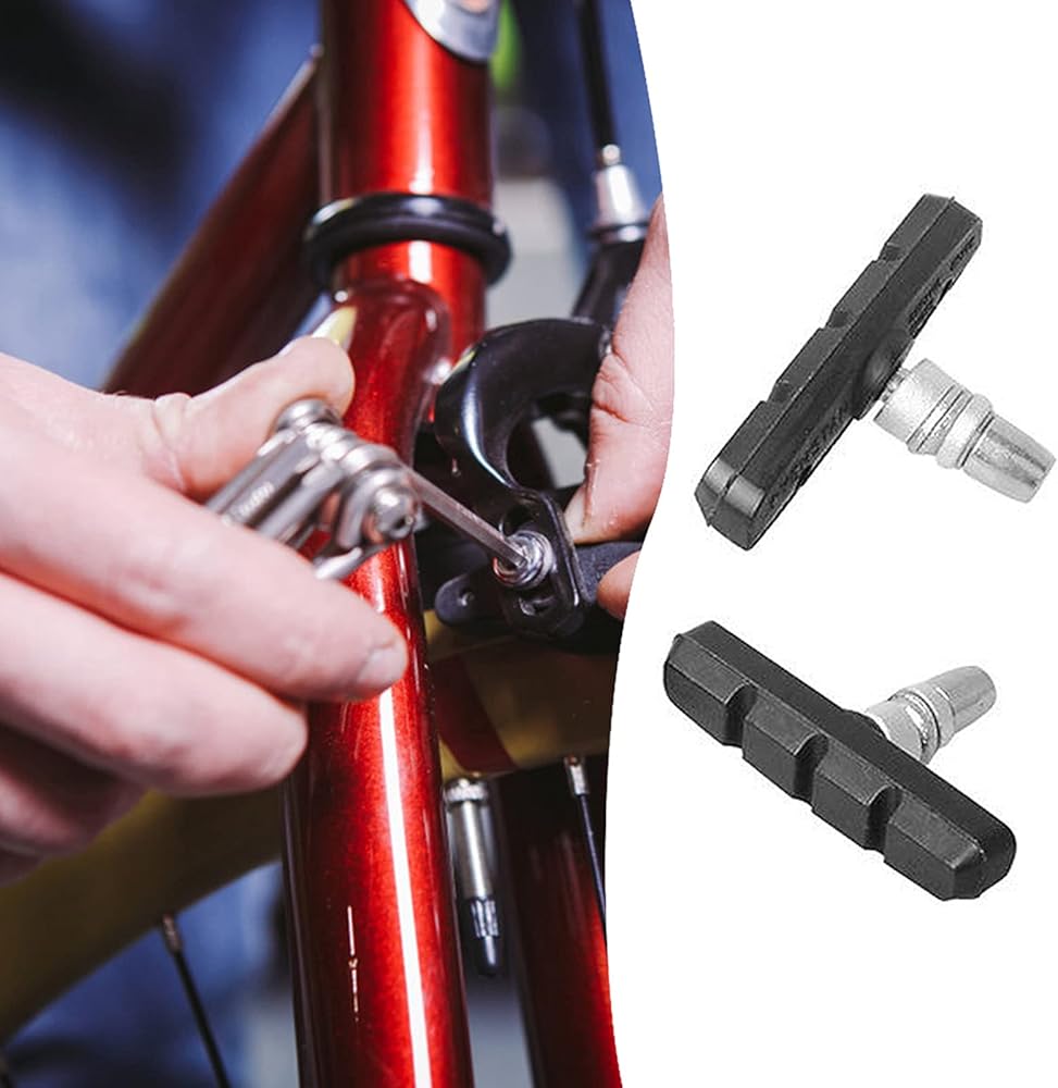 Description: Feature: Made of rubber and stainless steel,Water-proof and wear resistance. Specially designed for mountain bikes,Use: Most V-Brake system bike's front and rear brake pads. Easy installation,watch out for the order of all the washers and nuts Light weight,reduce the bike hindrance,stick to a screw. Can endure consistant jolts and bumps. Specification: Material: Rubber and metal Color: Black Size: 7.1*1.1*1.3cm (L*W*H)/2.8*0.4*0.5inch (Approx.) Package included: 2 Pairs × Bike V Brakes