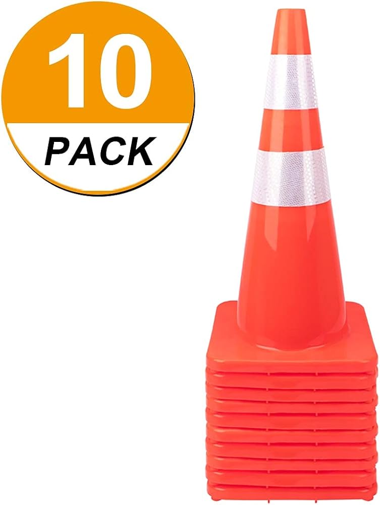 [عبوة من 10 قطع] مخروط مروري بلاستيكي مقاس 28 بوصة، مخاريط طريق آمنة من مادة PVC، مخاريط وقوف السيارات على الطرق، مخاريط بناء مخاريط خطر مرجحة، مخاريط علامة ميدانية برتقالية، مخاريط سلامة لوقوف السيارات، مخاريط مرورية