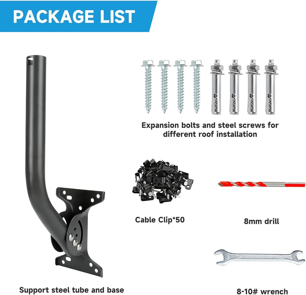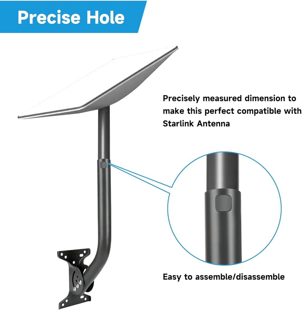 حامل سقف ستارلينك، مجموعة تركيب ستارلينك، عمود ستارلينك عالي التحمل، دعامة تثبيت محورية طويلة على الحائط مع أجهزة متوافقة مع ملحقات الأقمار الصناعية لمجموعة أطباق الإنترنت Starlink V2 (الجيل 2)