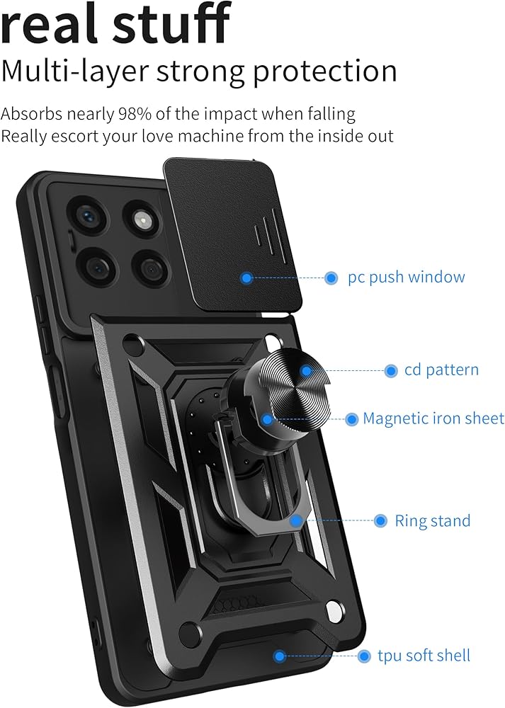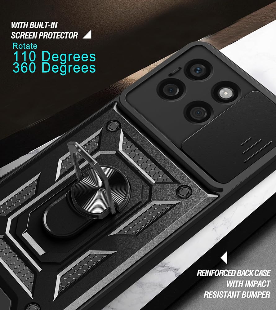 • [Multifunction] Metal kickstand can rotate 360°, easy to rotate and sturdy on the case. There is a push window design at the camera, which can effectively protect the camera of the phone.Built in kickstand gives you the convenience to watch videos and movies hands-free with desired and stability.