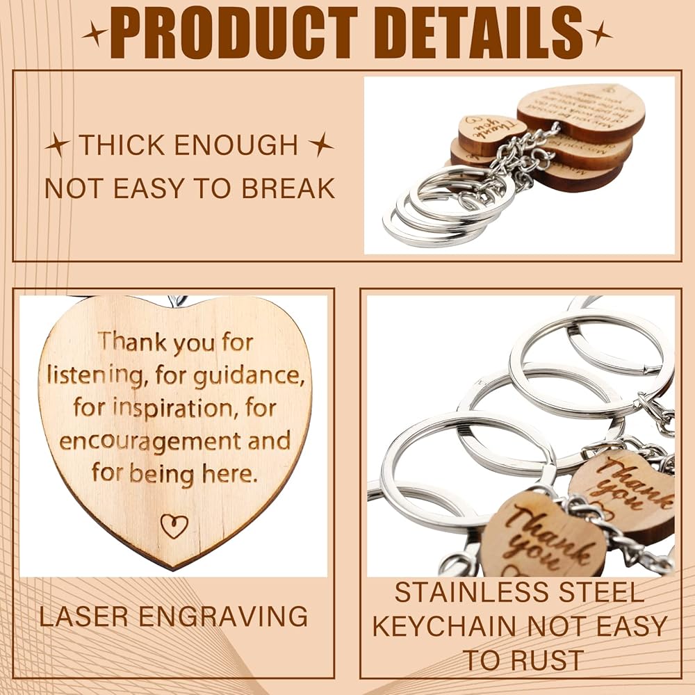 The teacher appreciation gift keychain comes with heart shaped wood pendant, engraved with motivational and inspirational words to express your attitude, ideal to send as a sweet gift to show your appreciation to your teachers, teaching assistants and other people.