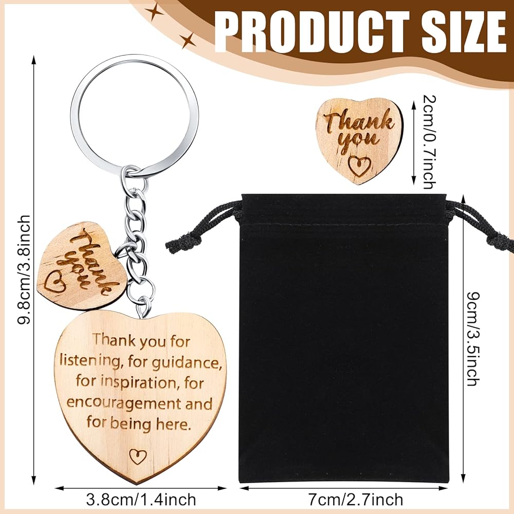 Teacher Appreciation Keychain Set: the package comes with 30 pieces wood heart pendant teacher keychain and 30 pieces black velvet bags, complete combinations are ideal appreciation gifts for giving to teachers, sufficient quantity allows you to share with others