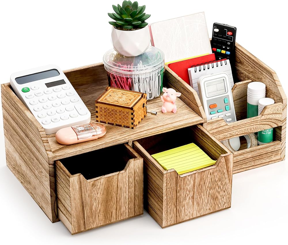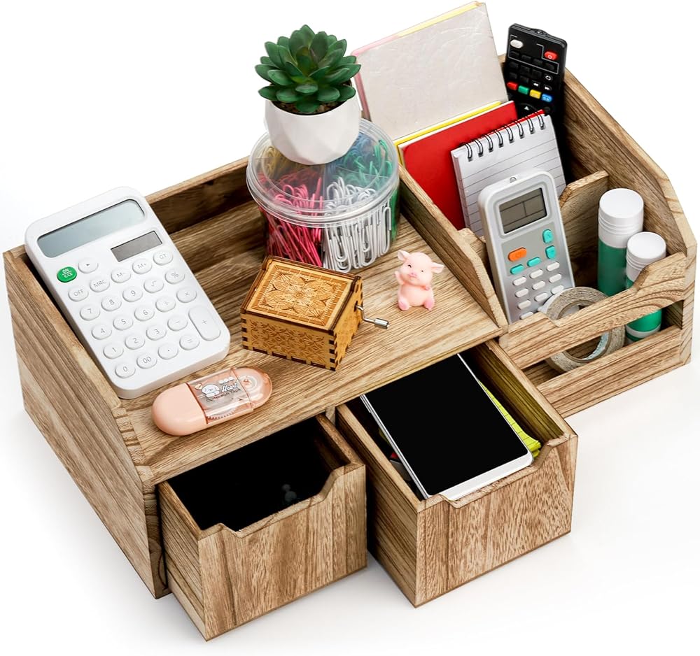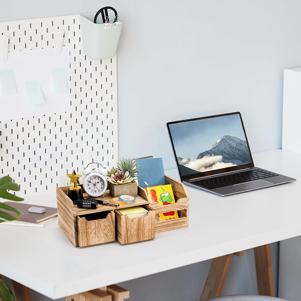 الحل الريفي المثالي: منظم سطح المكتب الخاص بنا مصنوع من الخشب الطبيعي عالي الجودة، وهو قوي ومتين، ومصنوع ليدوم مع بناء وتصميم عالي الجودة.