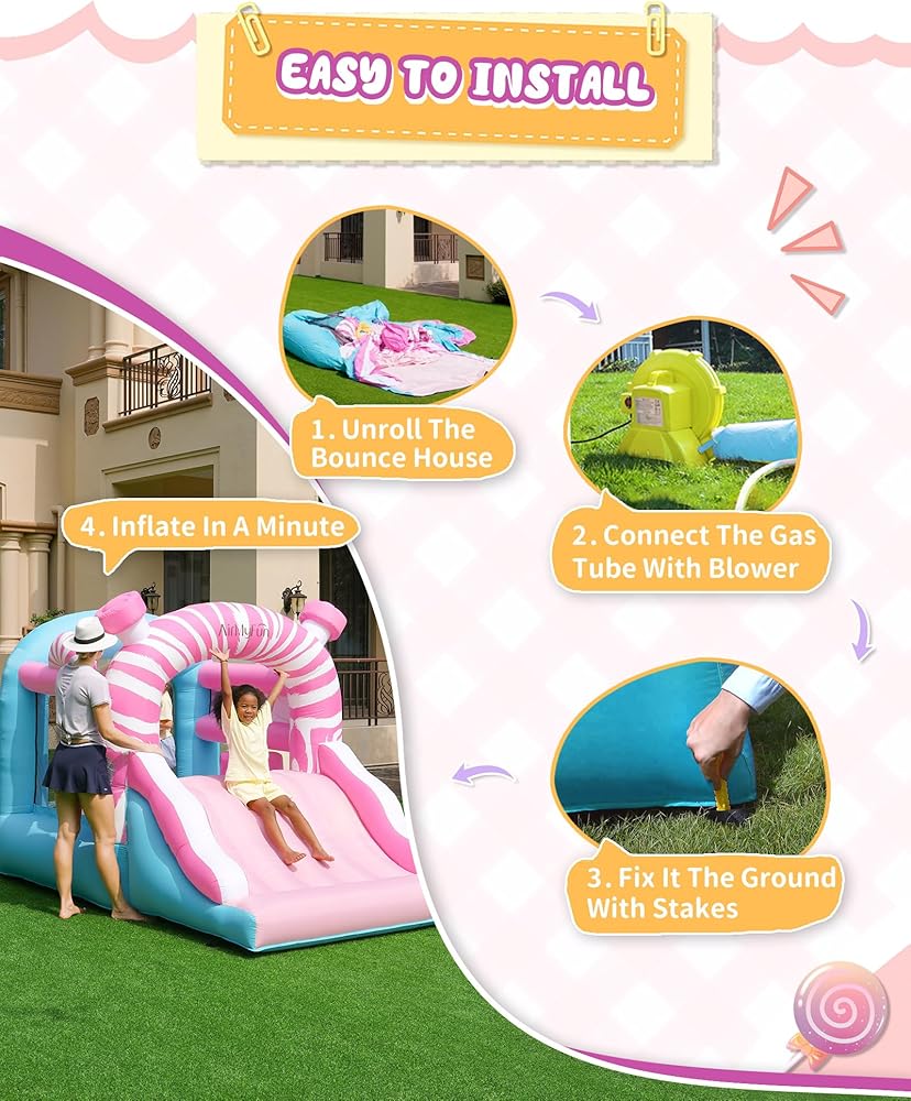 【لعب مثير للاهتمام في منزل الوثب】يعد هذا المنزل الارتداد الوردي للأطفال حديقة ترفيهية رائعة للاستمتاع بها لساعات متواصلة. تم تصميم منزل الأميرة النطاط هذا ليكون بمثابة بيت حلوى لإحساس صيفي.