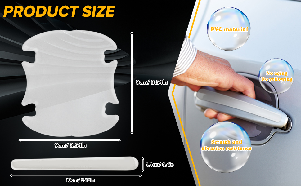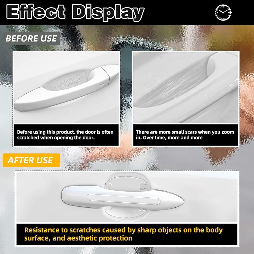 🚗 لاصق مطور: الطبقة الواقية لمقبض الباب مصنوعة من مادة صمغ متساقطة مطورة، وهي مقاومة للخدش ومقاومة للاهتراء، وشفافية عالية، وتحمي سيارتك ولا تؤثر على جمال سيارتك الأصلية.