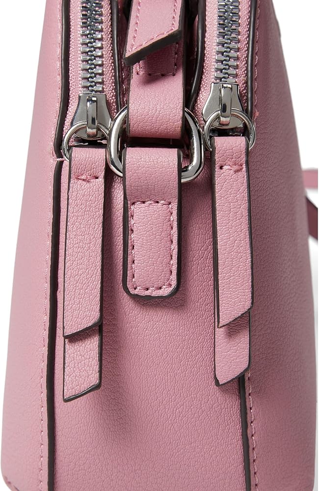 The Brie Mini Dome Crossbody features dual zippered with open center closure, card slots, and two main compartments. It also includes an adjustable crossbody strap to wear long or short.