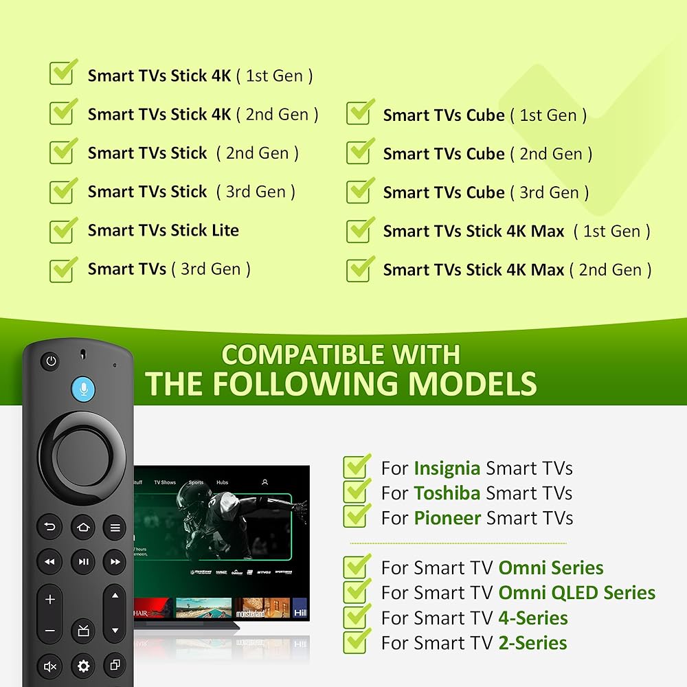 نموذج متوافق: جهاز تحكم عن بعد صوتي بديل مناسب لأجهزة التلفاز الذكية Stick 4K، مناسب لأجهزة التلفاز الذكية Stick Lite، مناسب لأجهزة التلفاز الذكية (الجيل الثاني والثالث)، مناسب لمكعب أجهزة التلفاز الذكية من الجيل الأول والثاني، ويناسب أجهزة التلفاز الذكية (الجيل الثالث) ).