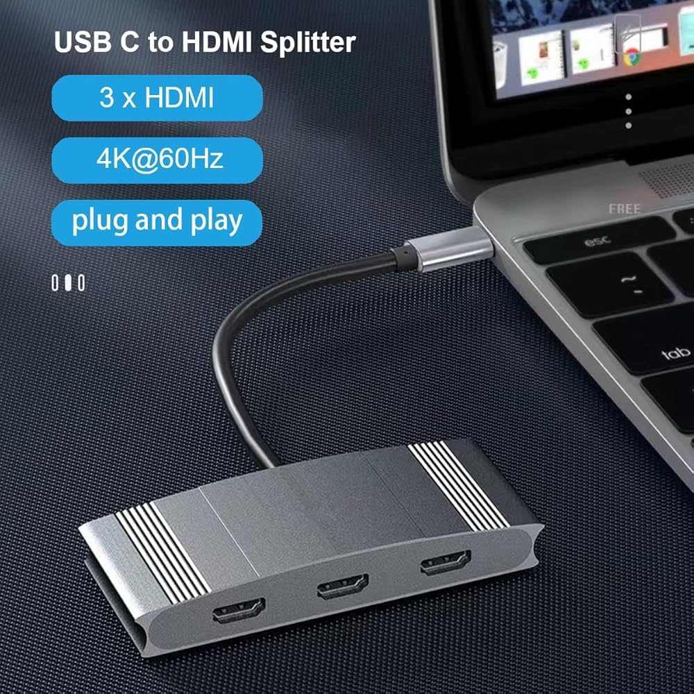 محول USB C إلى 3 HDMI، شاشة متعددة 3 منافذ من النوع C، يدعم ثنائي 4K عند 60 هرتز أو واحد 4K عند 60 هرتز واثنين من 4K عند 30 هرتز متوافق مع نظام التشغيل Windows وMac OS