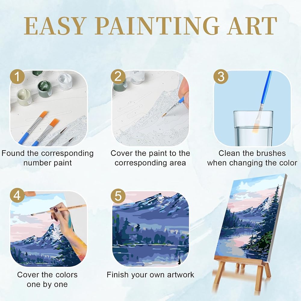 اختيار الهدايا والديكور - تبدو اللوحة النهائية وكأنها عمل فني احترافي، وديكور ممتاز للمنزل. يمكن أن تكون مجموعات الطلاء بالأرقام المخصصة للبالغين هدية ذات معنى لوالديك وعشاقك وأصدقائك في مختلف العطلات المهمة، مثل عيد الأم وعيد الميلاد وعيد الحب والكريسماس وعيد رأس السنة الجديدة. تعتبر لعبة Paint by Number هواية سهلة ومجزية تستمر في العطاء.