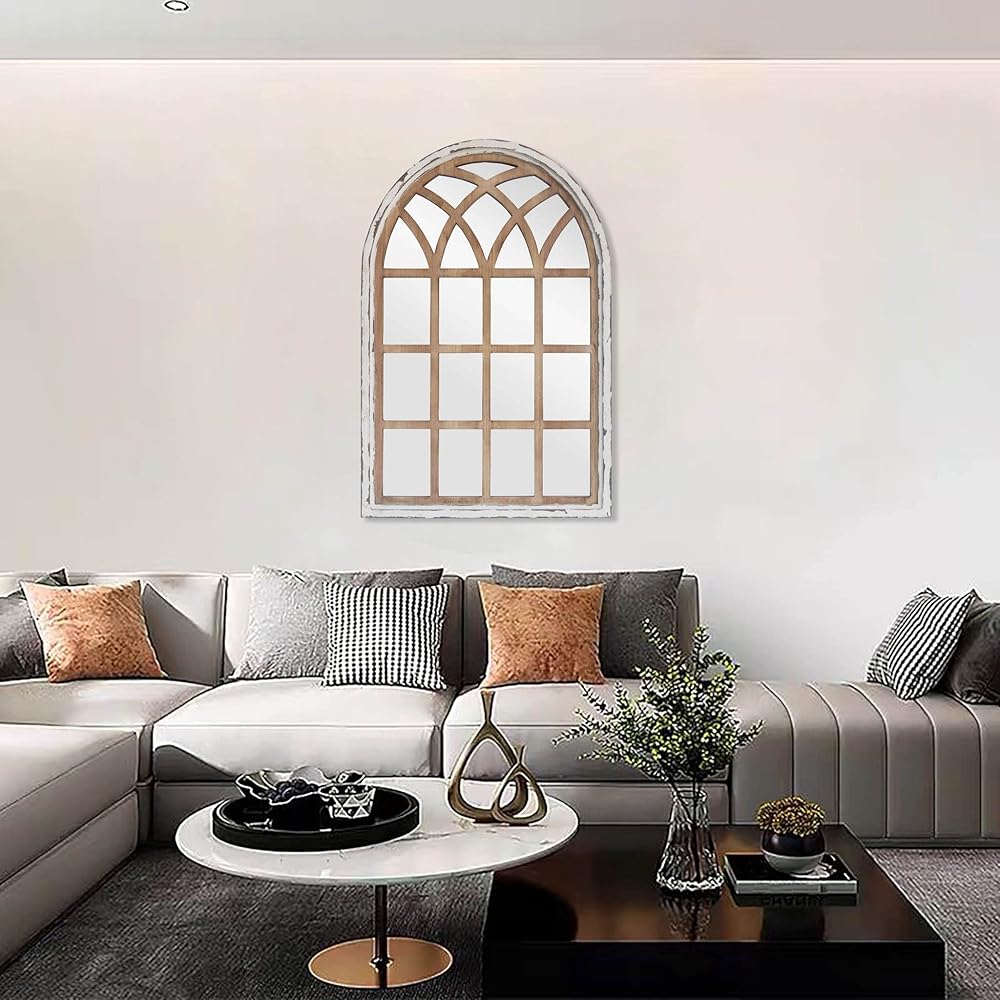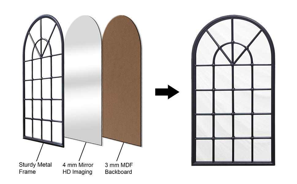 【سهلة التعليق】تأتي مرآة النافذة المزخرفة جاهزة للتعليق مع شماعة مسننة معدنية مثبتة مسبقًا على الظهر. مثالية للتركيب في المدخل أو الردهة، وغرفة المعيشة، والحمام، وغرفة النوم، والمدخل، إلخ.