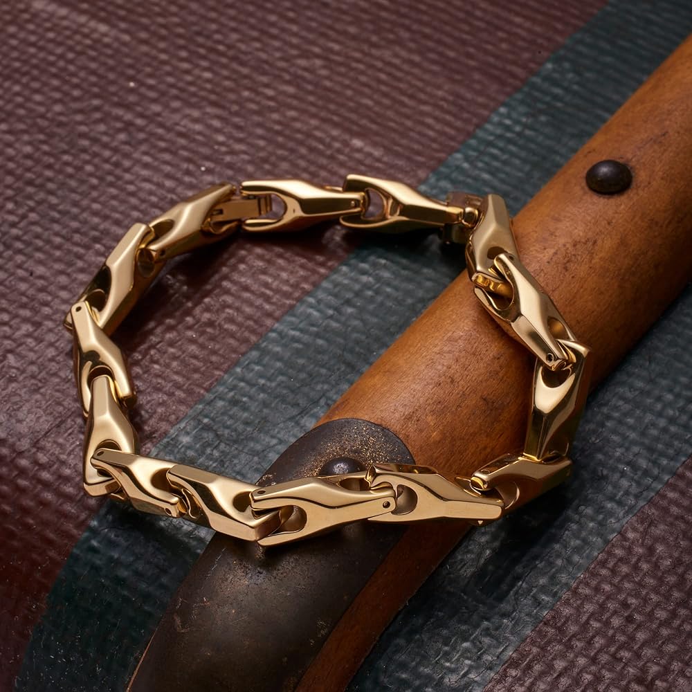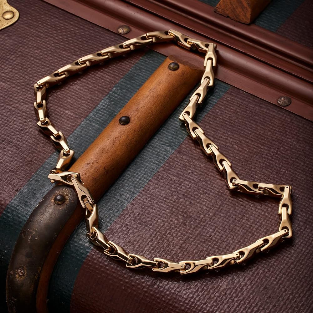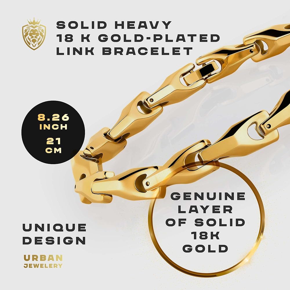 ✔ تصميم فريد: سوار وقلادة ثنائية فريدة من نوعها مطلية بالذهب عيار 18 قيراط للرجال حادة وحديثة وأنيقة. مع تصميم منحني سلس غير عادي للرجال العصريين الذين يحبون الرقي الحصري. إذا كنت تبحث عن قطعتين قويتين ومتينتين، تنضح بالأناقة، فإن هذا الثنائي الفريد من نوعه هو الخيار المناسب لك! هذه واحدة من مجموعاتنا الأكثر شعبية في المجموعة وهي تحتوي على آلية قفل حديثة مصممة لتكون آمنة وقوية للغاية.