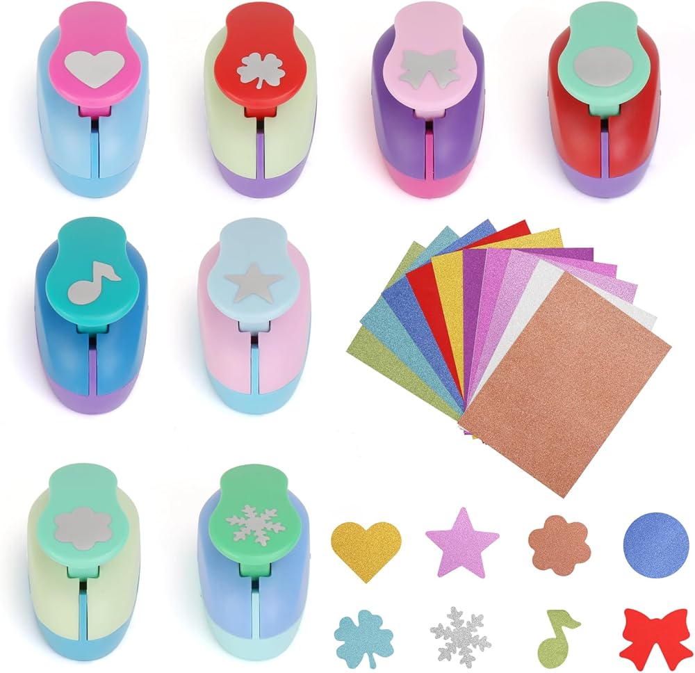 خرامة ثقب للحرف اليدوية، 8 قطع من خرامة الورق للحرف اليدوية، مستلزمات خرامة القصاصات لأشكال خرامة لصنع بطاقات الأطفال، صور DIY، مستلزمات مكتب المعلم