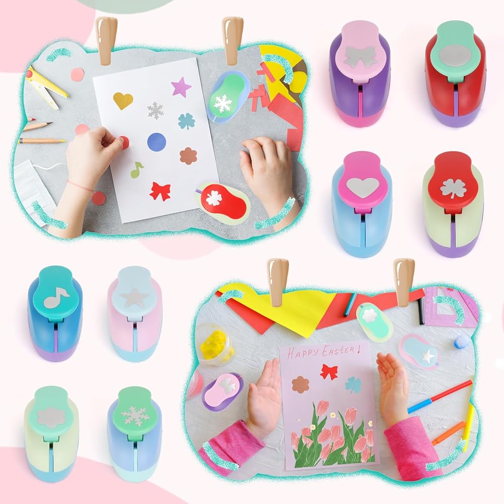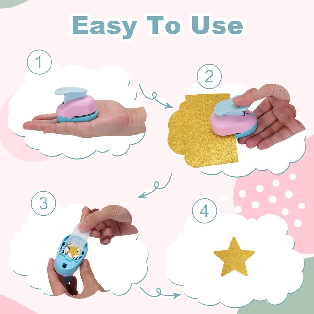 • خرامات ورقية صديقة للبالغين/الأطفال - رافعة زنبركية سهلة الاستخدام، بوضوح مع حافة نظيفة، مادة لطيفة وقوية وغير سامة، مناسبة لأيدي الأطفال الصغيرة، واضغط على الزر دون عناء واقطع الأشكال التي تريدها.