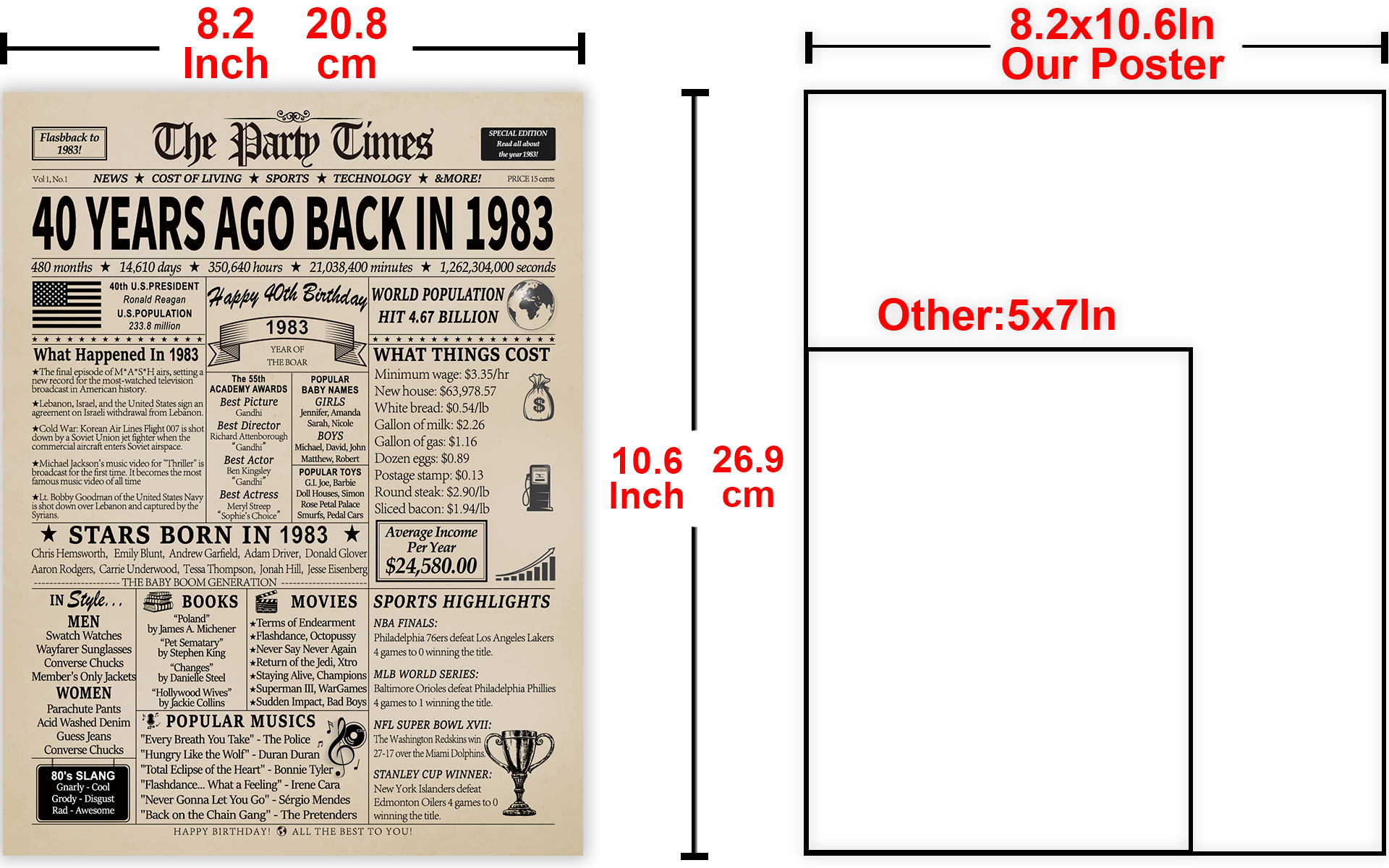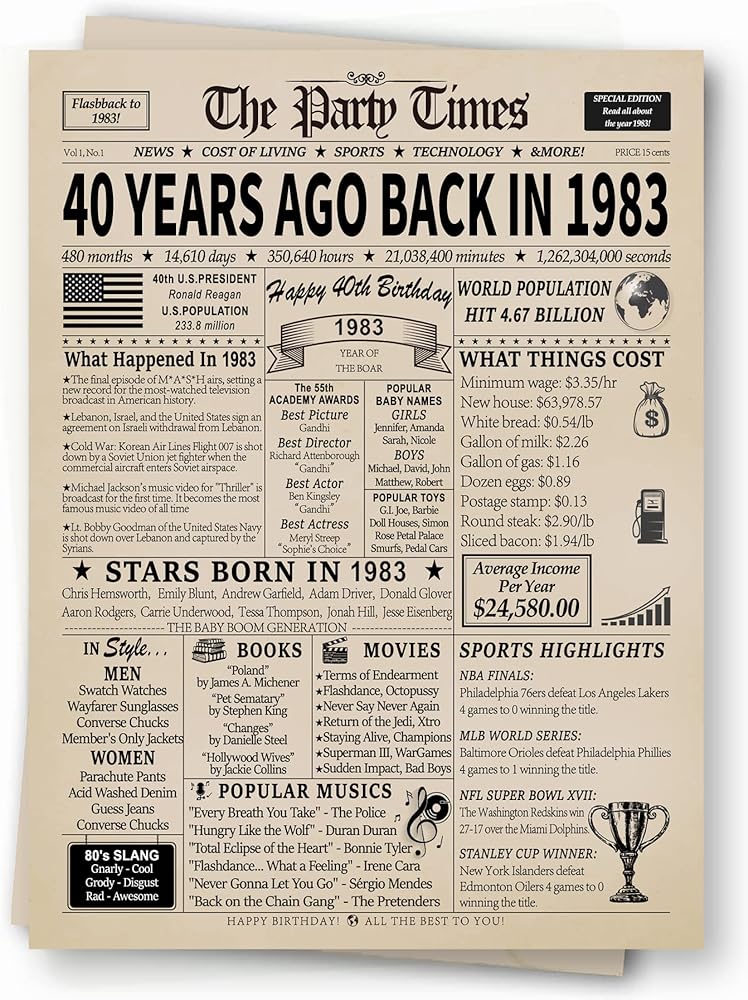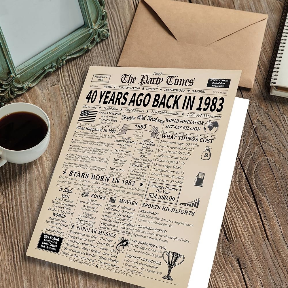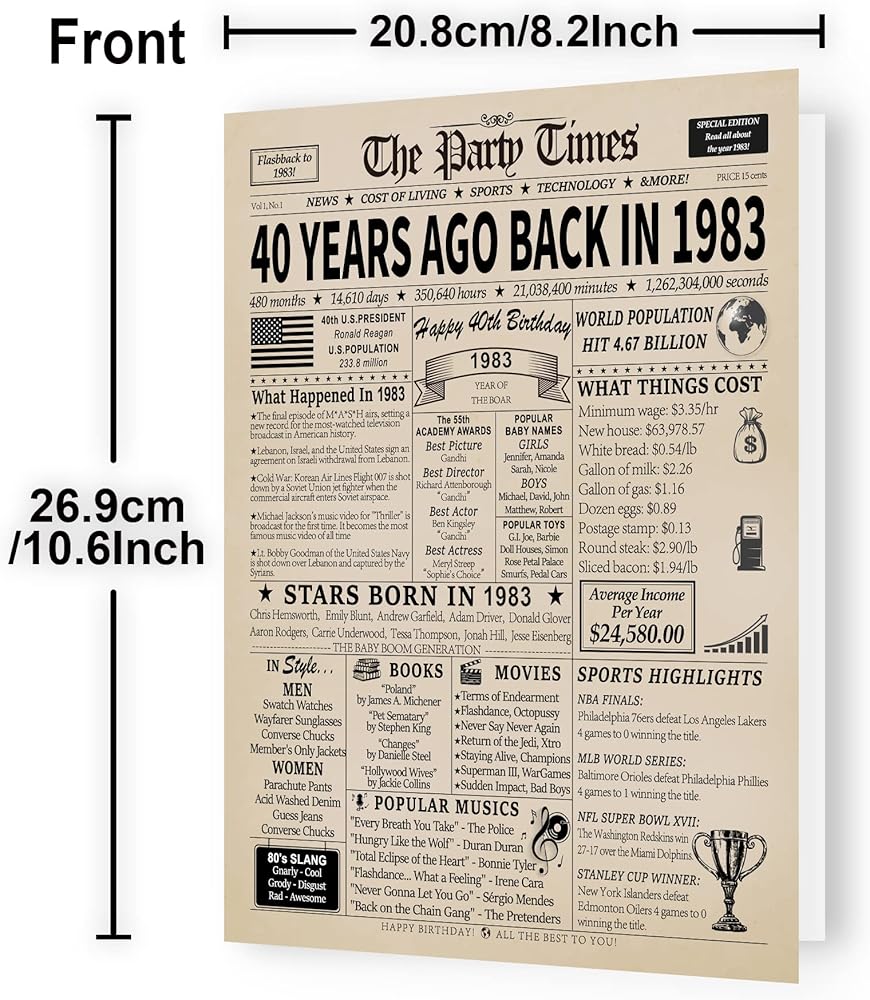 💕قطعة محادثة رائعة: تعمل هذه البطاقة بمثابة بداية ممتازة للمحادثة ومن المؤكد أنها ستثير ذكريات الحنين إلى الماضي. تتميز بأحداث شعبية وأفلام وموسيقى وفرق رياضية وحقائق من العام المعني، مما يجعلها قطعة ديكور فريدة وممتعة.