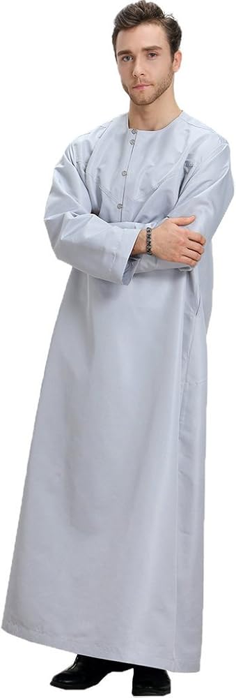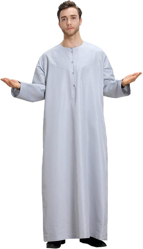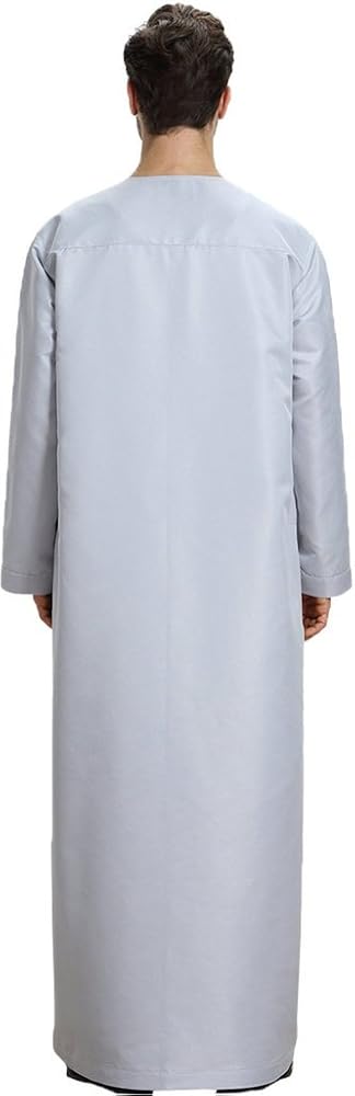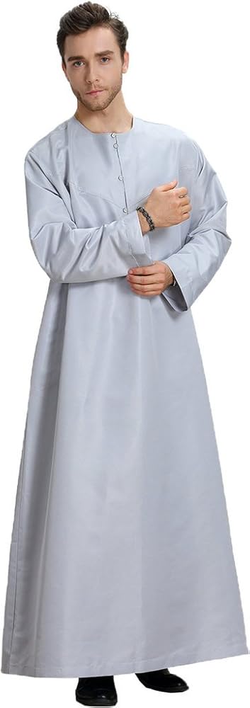رداء Ababalaya الرجالي ذو الرقبة المستديرة والأكمام الطويلة الصلبة ثوب عربي سعودي إسلامي إسلامي دبي