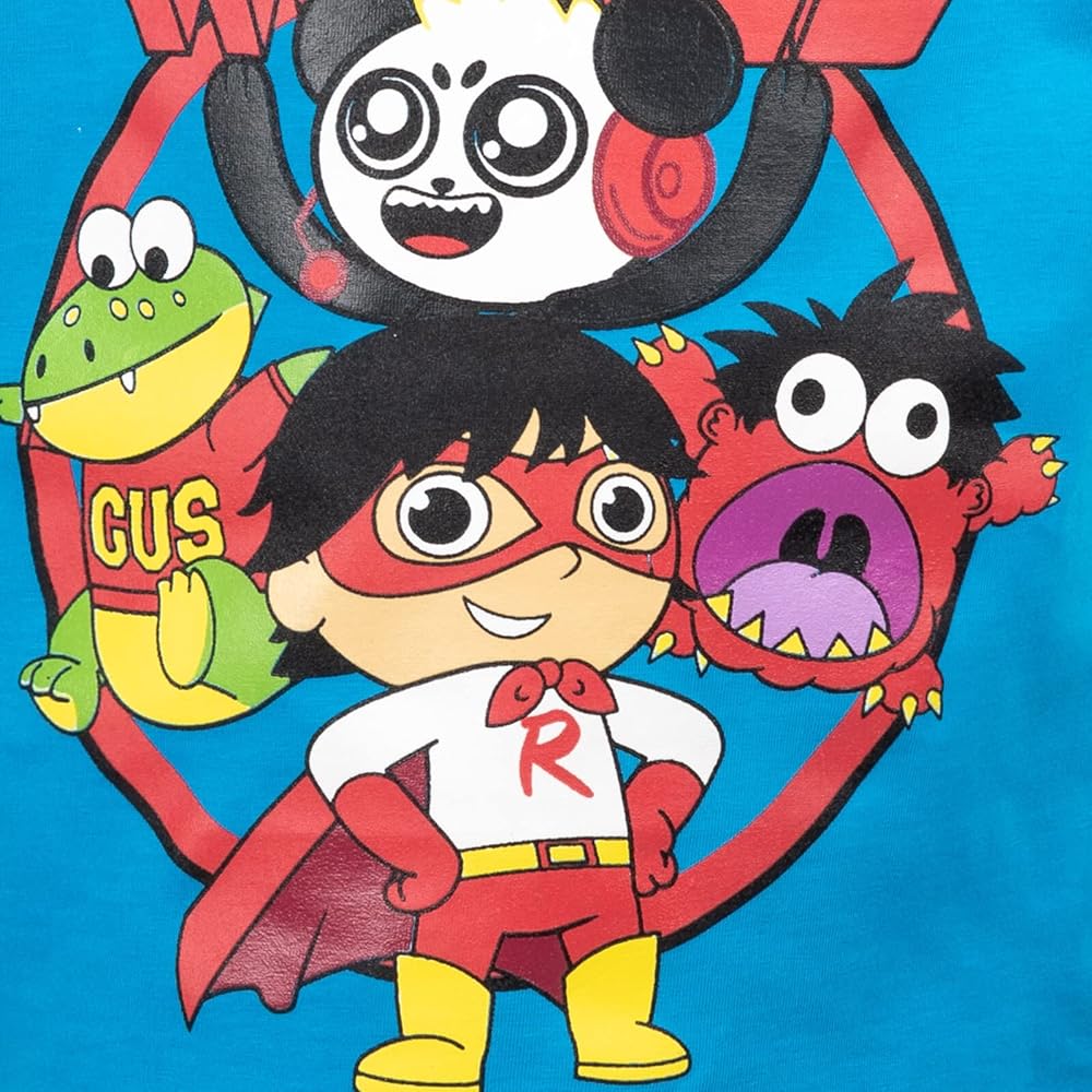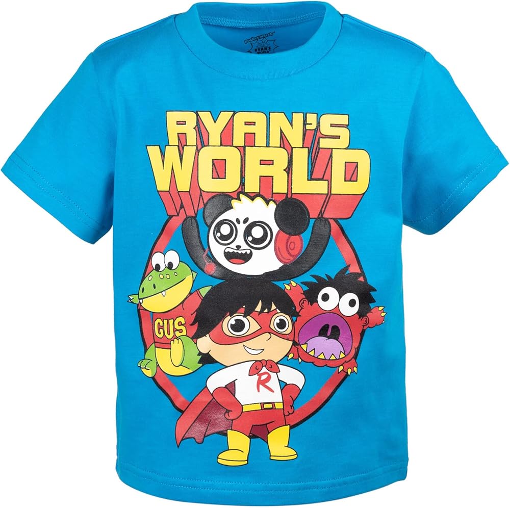 - Your child's favorite outfit featuring Red Titan Ryan, Combo Panda, and Gus the frog with "Ryan's World" on top of them