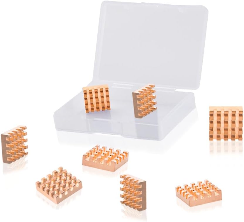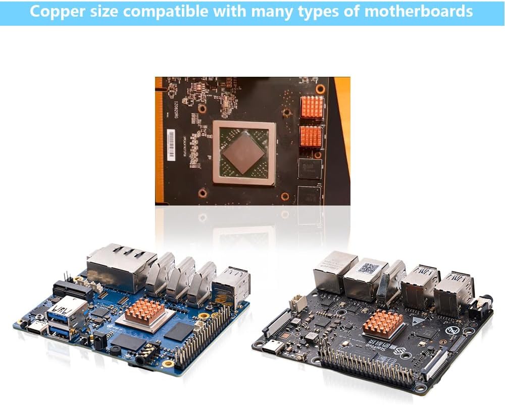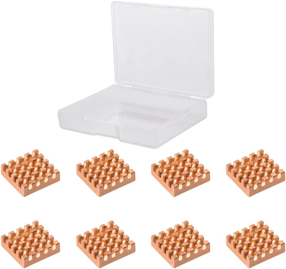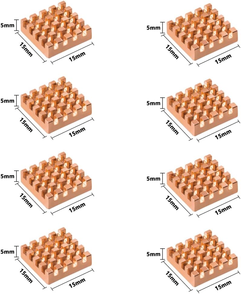 GeeekPi 8 قطع من النحاس النقي 15 × 15 × 5 مم مع شريط لاصق حراري لتبريد الرقائق الإلكترونية، متوافق مع Raspberry Pi/Orange Pi/Rock Pi/Banana Pi/Tinker Board/PCB Board