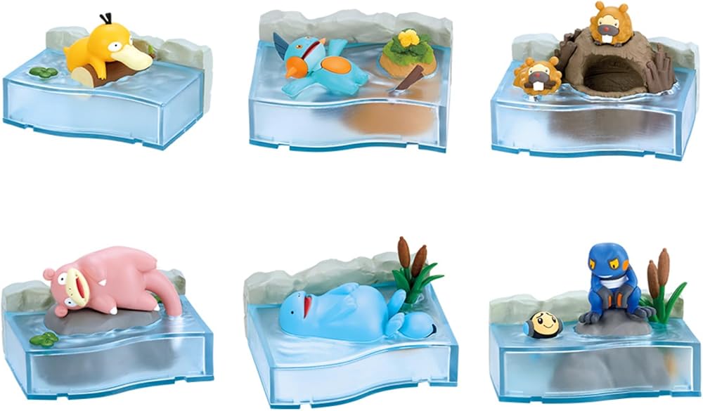 【MINIESCAPES】RE-MENT منمنمات يابانية صغيرة من سلسلة عينات البوكيمون وقت البرد - لحظة سلمية بجوار النهر مجموعة كاملة من 6 قطع من أثاث بيت الدمى