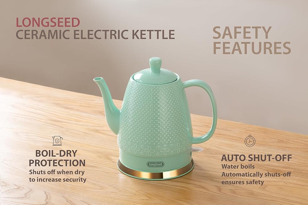 • 【EASY TO USE】All ceramic design, ensuring the purity of boiled water. The ergonomic handle provides a comfortable grip, and the lid opens effortlessly for hassle-free filling. This combination of safety and user-friendly design, safeguarding the appliance and enhancing user confidence.