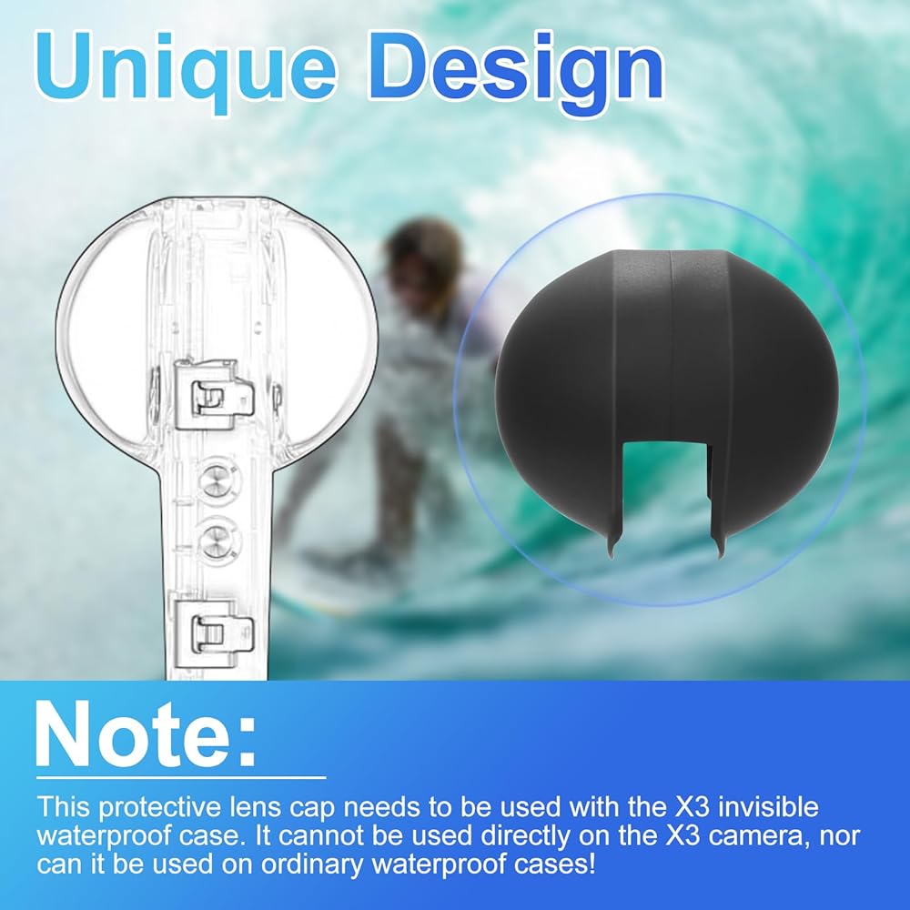 Professional Design: Our silicone lens cap is only suitable for Insta360 x3 invisible waterproof case. It is not suitable for use directly with x3 cameras or ordinary waterproof cases. Please note that our product is not sponsored or endorsed by, or affiliated with the brands it fits, including Insta.