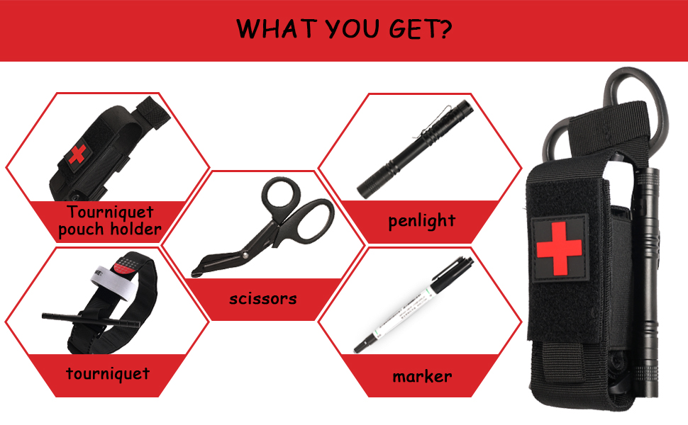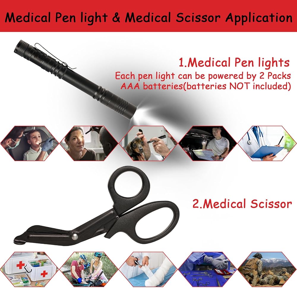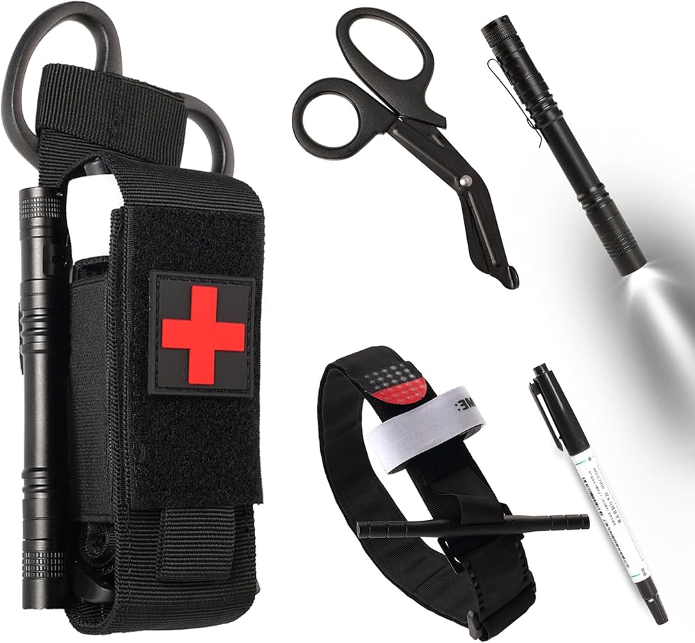 【عاصبة عالية الجودة】تتضمن مجموعة المنتجات هذه 5 منتجات مشهورة: حامل أكياس العاصبة، والعاصبة، ومقص الصدمات، وقلم التحديد، وضوء القلم. إنه مناسب جدًا للاستخدام في المنزل وفي حالات الطوارئ التي تواجهها في الهواء الطلق. يسمح لك ضوء القلم باستخدام أدوات المساعدة في حالات الطوارئ في أي موقف أثناء الليل.