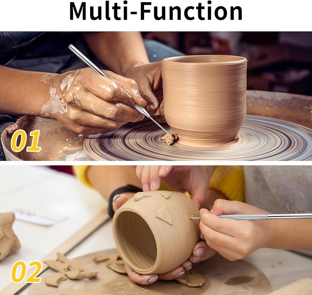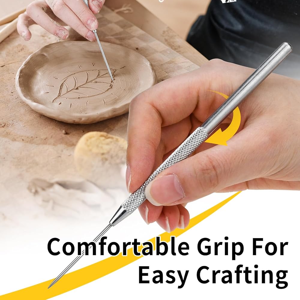 The clay needle tools are ideal for intricate work in clay projects, such as cutting designs, trimming, positioning, or even decorating cookies with icing; The bristles of the feather wire tool allow for creating unique effects and multiple fine lines with a single stroke.
