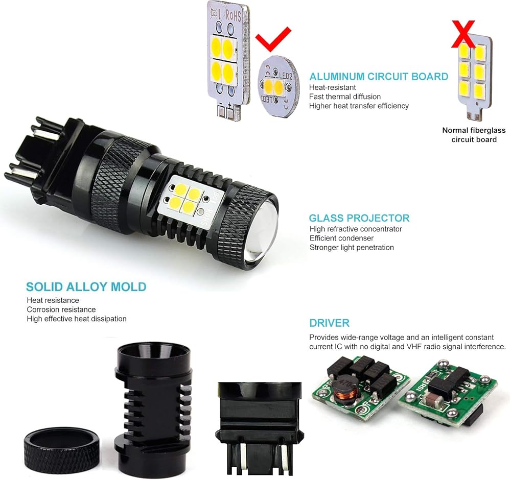 اللون: 6000K أبيض. مقاوم للماء: IP65. الجهد: 12 فولت إلى 24 فولت. صالح: 3156 3056 3356 3456 4156 3157 3047 3057 3357 3457 4057 4111 4114 4157 إلخ.